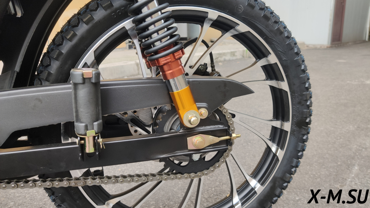 Рама мопеда выполнена из прочного и легкого сплава CR-MO (хромолибден) с пространственной технологией конструкции и толщиной 2.5 мм, обеспечивающей жесткость опоры. Мопед может использоваться с высокой нагрузкой на дальние расстояния по различным видам дорог. Благодаря высокому клиренсу и крупному протектору резины, мопед справляется даже с бездорожьем.. Рама создана при помощи технологии строения пространственной рамы Благодаря современным технологиям 3D моделирования рама получилась не только легкой но и крепкой, позволяющей нагружать мопед до 250кг полезного груза. Что значительно превосходит значения конкурентов.