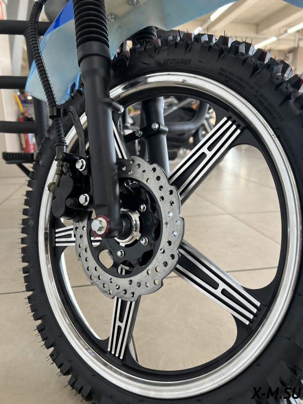 Передний дисковый вентилируемый тормоз с двухпоршневым суппортом уверенно остановит мопед на любой дороге и в любую погоду.