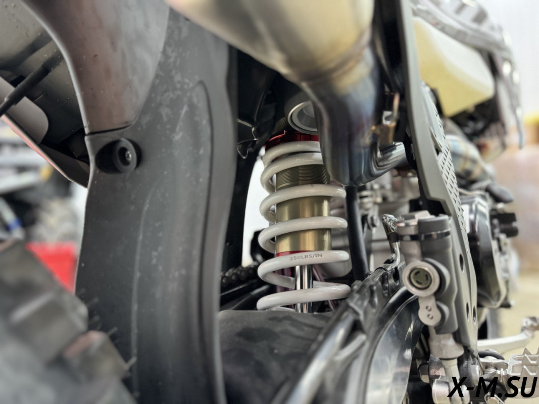 Пластик используется KTM2020 – очень прочный и распространенный, что делает его максимально возможным к обслуживанию. Руль IGP TwinWall 22/28 алюминиевый на всех моделях! Силиконовые грипсы Nibbi Racing – левая на замке, правая на короткоходной ручке газа Nibbi. Рычаги тормоза/сцепления – неломайки, из фрезерованного алюминия от CNC. Влагозащищенные кнопки старт/стоп на руле. Складной рычаг переключения передач, фрезерованный, из алюминия, от бренда PRO CAKEN. Лапка тормоза так же фрезерованная, алюминиевая. Самая легкая и прочная приводная цепь RK520MXZ уже установлена!