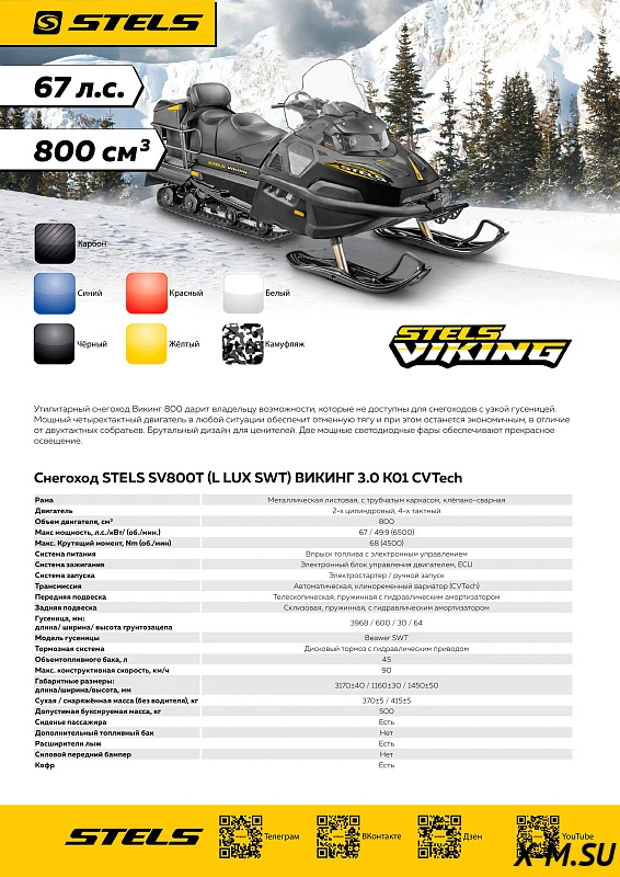 Цена на товар Снегоход STELS ВИКИНГ (VIKING) SV800T LUX V3.0 K01 SWT CVTECH не является итоговой и может измениться в зависимости от валютных курсов, общей экономической ситуации или логистических и иных факторов.