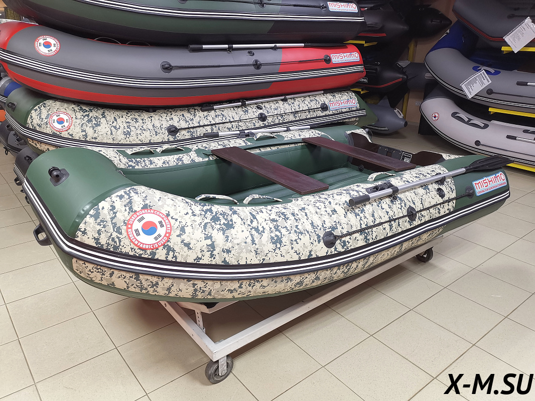 Купил MISHIMO PRO 315. Супер лодка! Очень доволен покупкой. Все заявленные характеристики соответствуют действительности. Устойчивая, прочная, легко управляется. Система OVERPRESSURE AIR-PROTECTION работает на ура! Не знаю как она работает, но работает. Ткань MehleR (у меня именно такая) - качество супер. Кстати, в описании немного неточностей с объемом, но это мелочи! Плюсов намного больше. Надувается быстро, сдувается тоже. Про качество сборки - нет никаких претензий, всё сделано очень аккуратно.