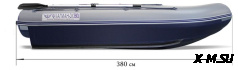 Ее отличают ПВХ высокой плотности 1350 г/м2 (и баллон, и днище) и дополнительное бронирование 5 мм полиуретановой лентой (ширина брони по килю - 8 см, по баллонам - 20 см).