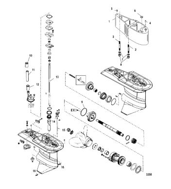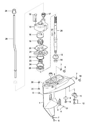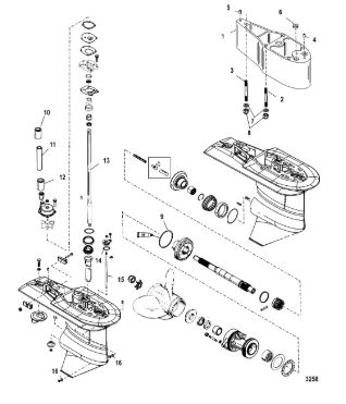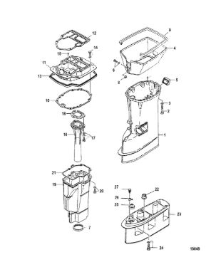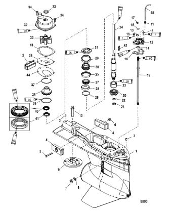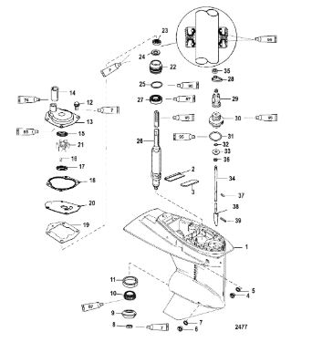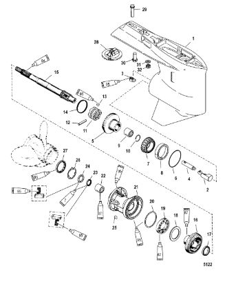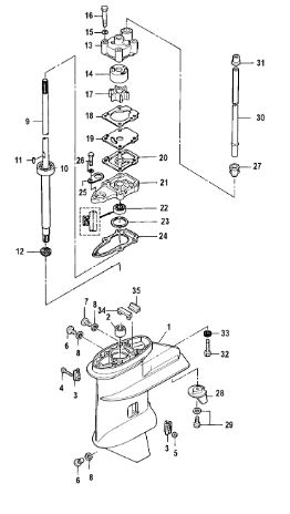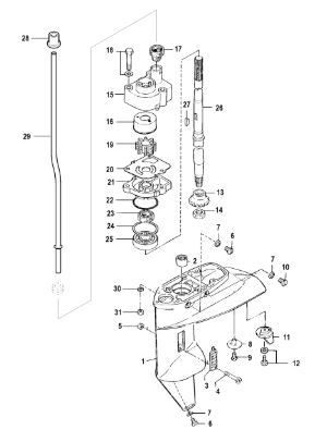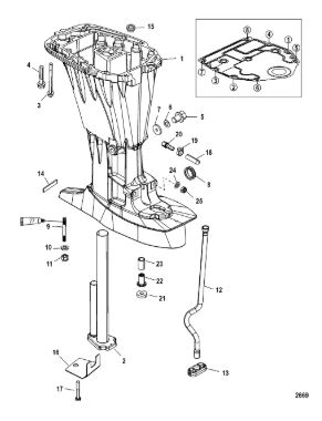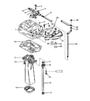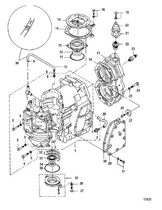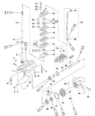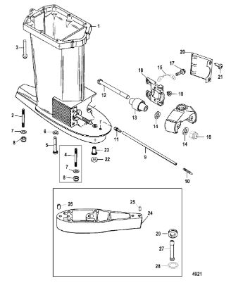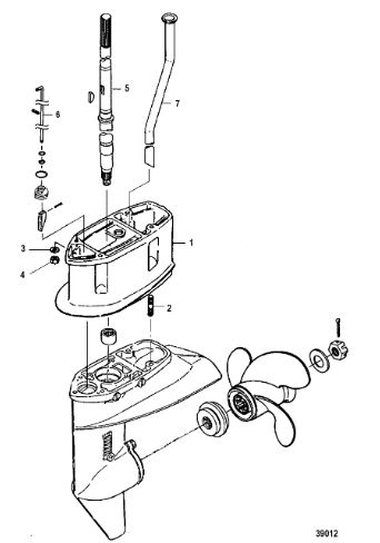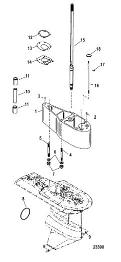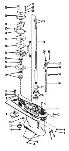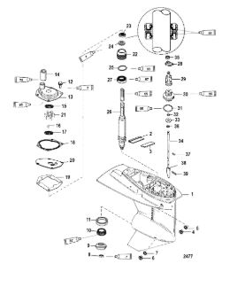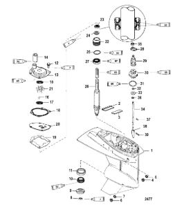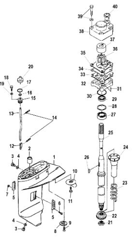 Корпус карданного вала, редуктор 2-х тактного ПЛМ MERCURY 5 M Серийный номер от 0P017000 до 0P400999
