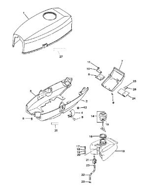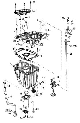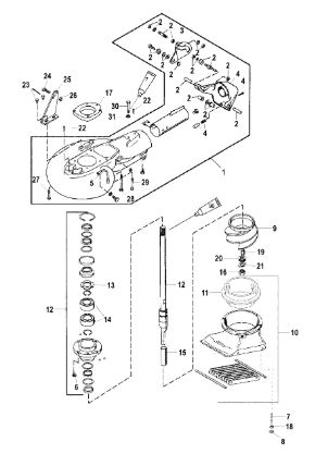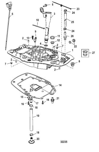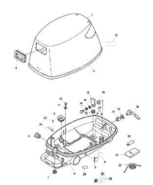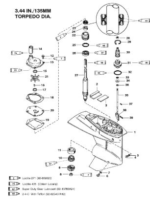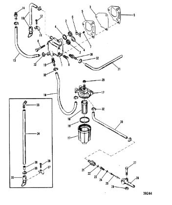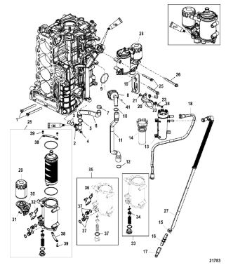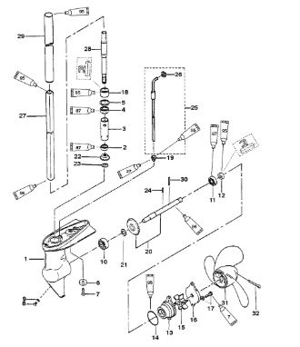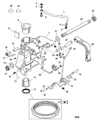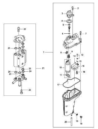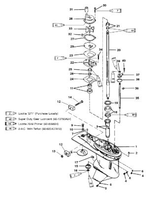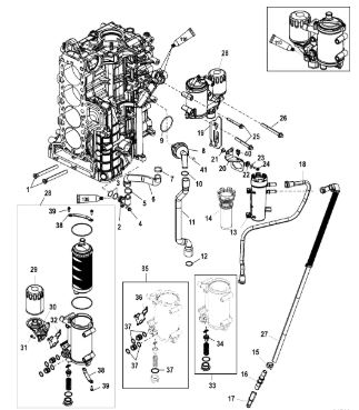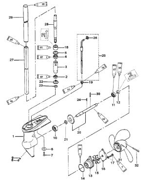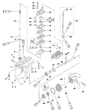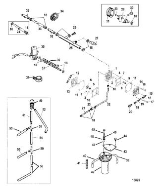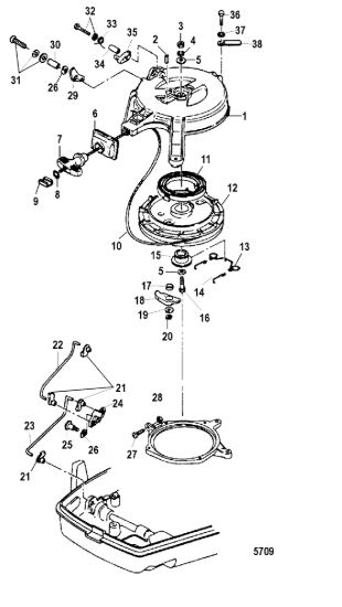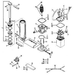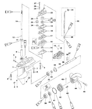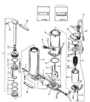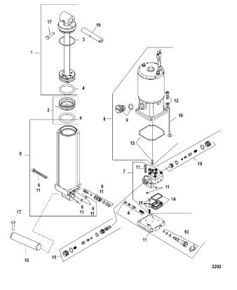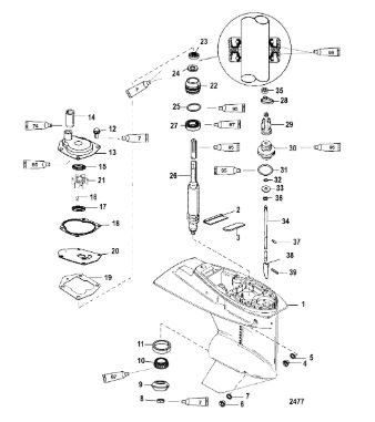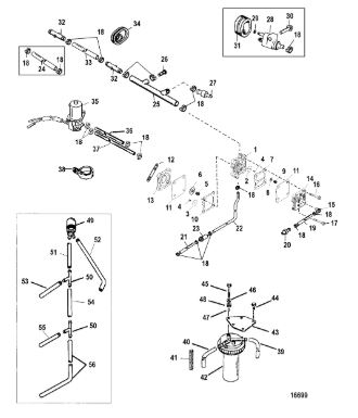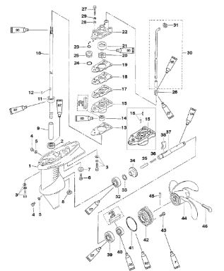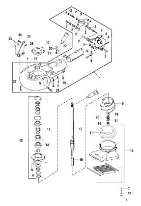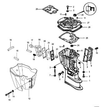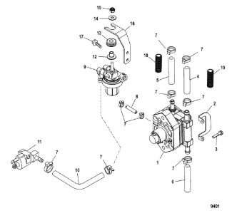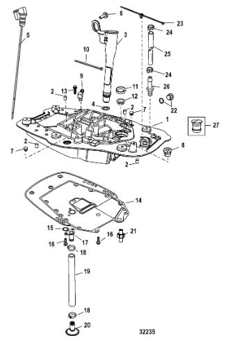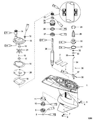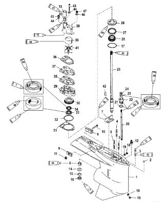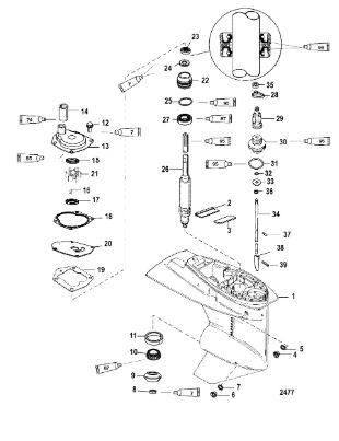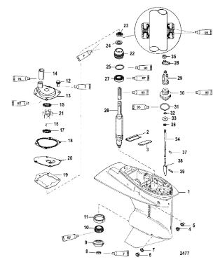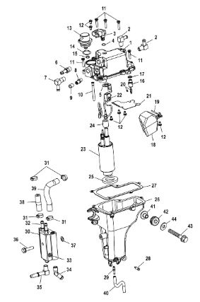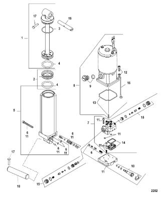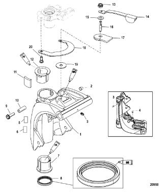 Компоненты гидроподъема (Часть 1) 4-Х ТАКТНОГО ПЛМ MERCURY 40 Серийный номер от 0P153500 до 0P400999