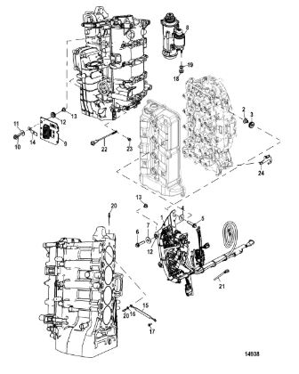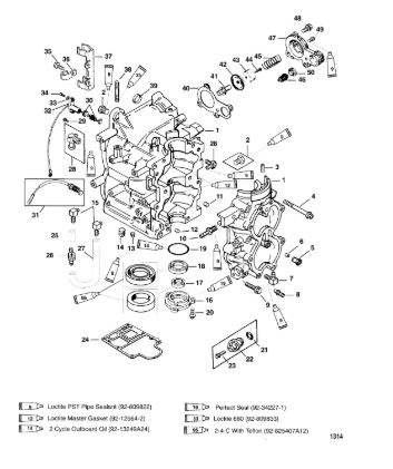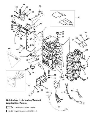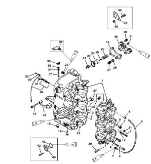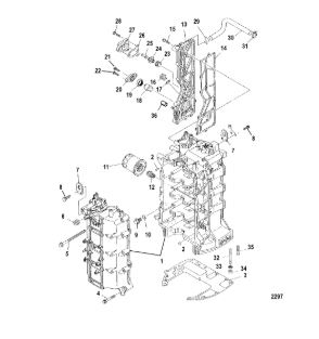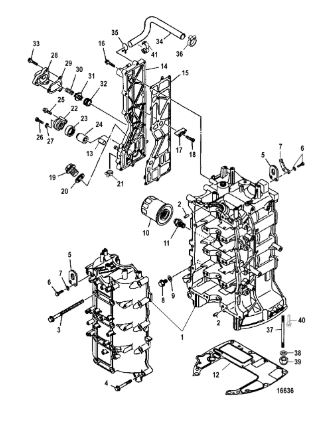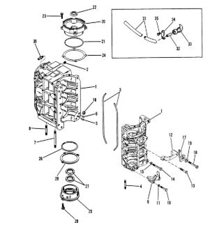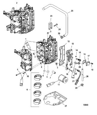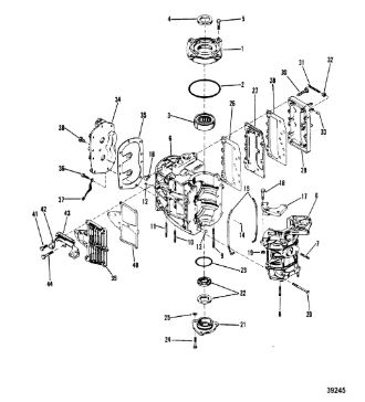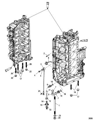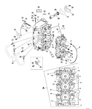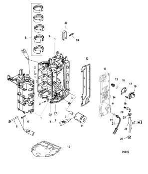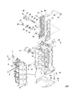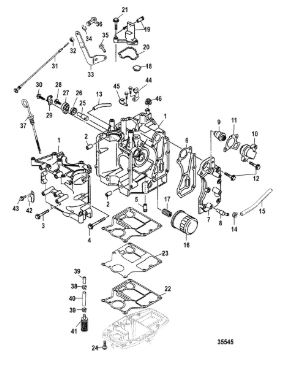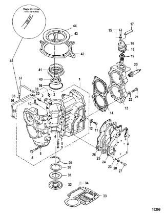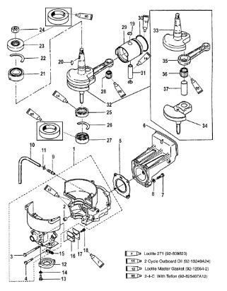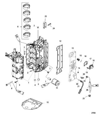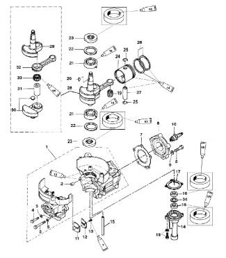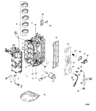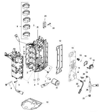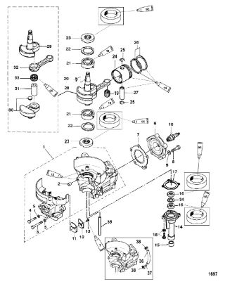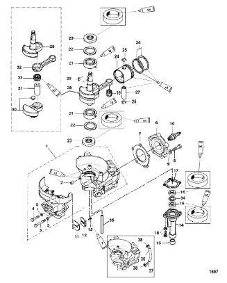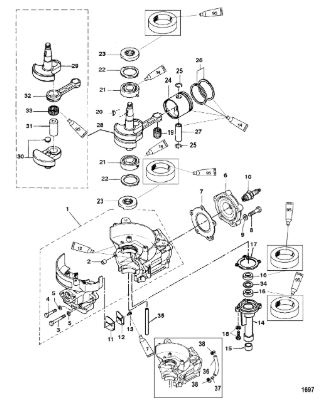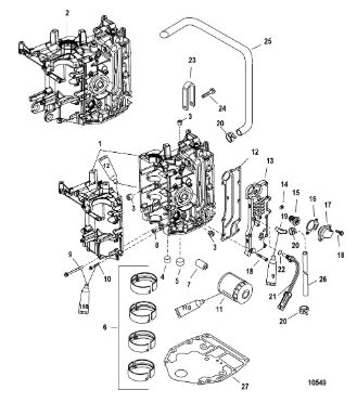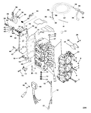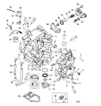 Блок цилиндров и картер (Часть 2) 2-Х ТАКТНОГО ПЛМ MERCURY 50EO Серийный номер от 9885345 до 9973099
