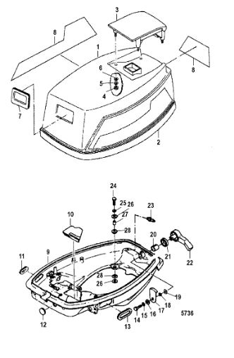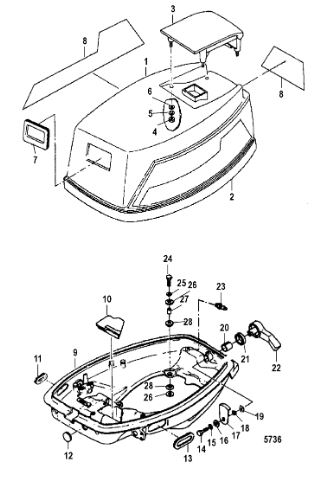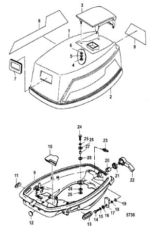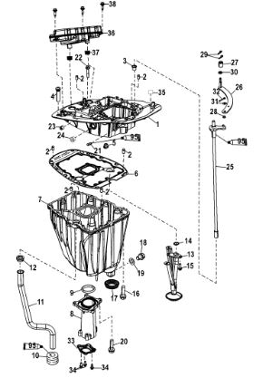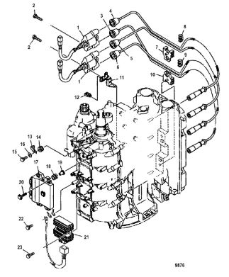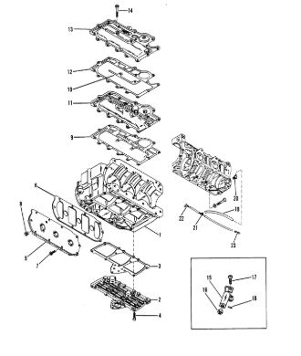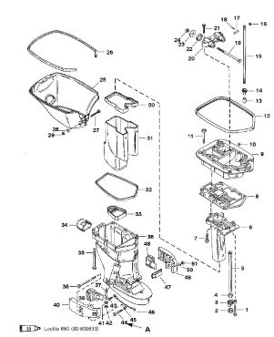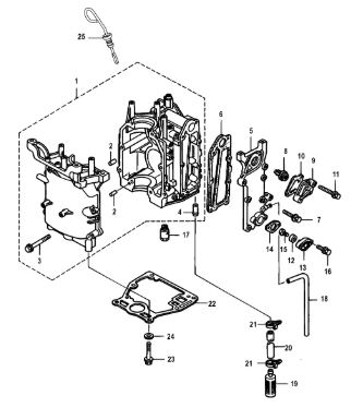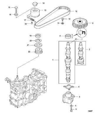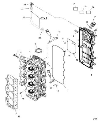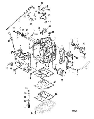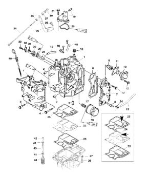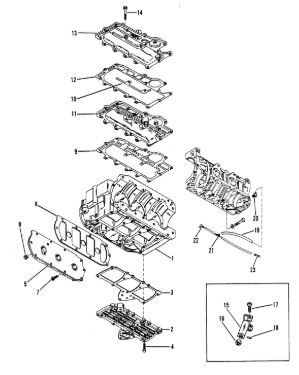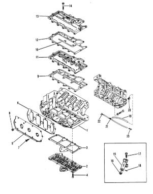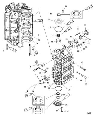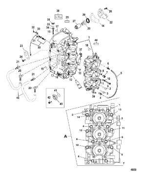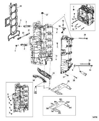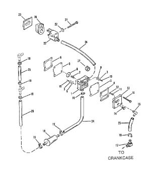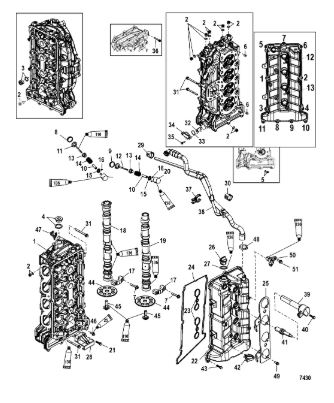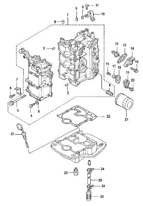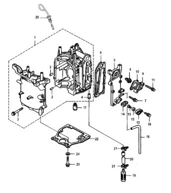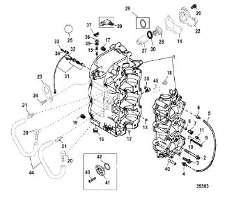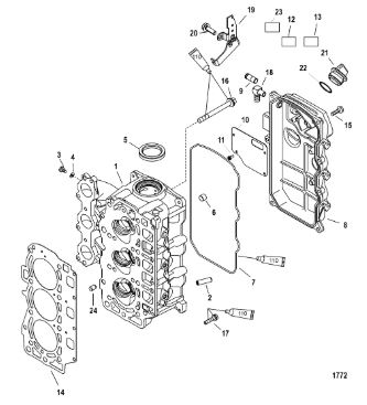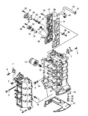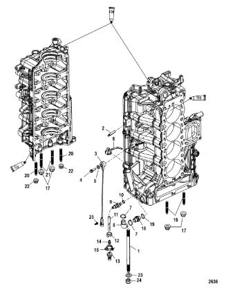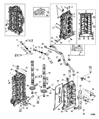 Блок цилиндров и картер (Часть 2) 2-Х ТАКТНОГО ПЛМ MERCURY 50EO Серийный номер от 9885345 до 9973099