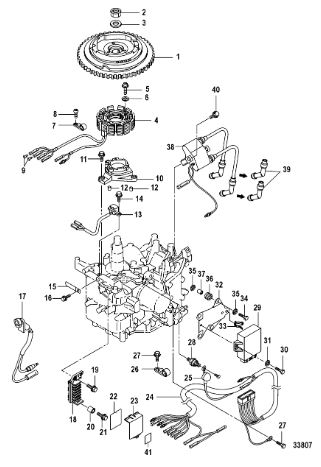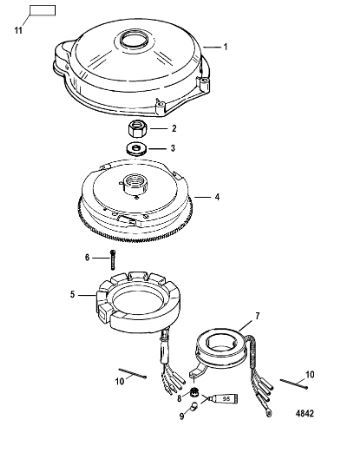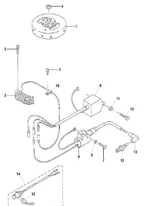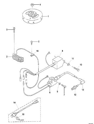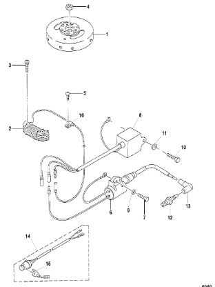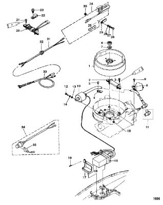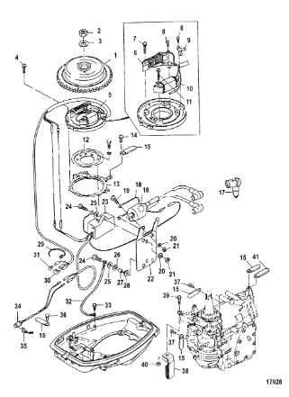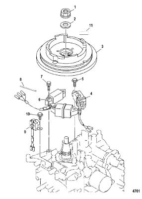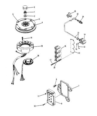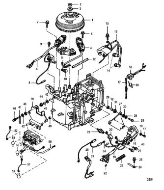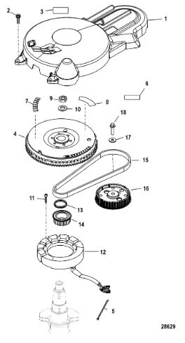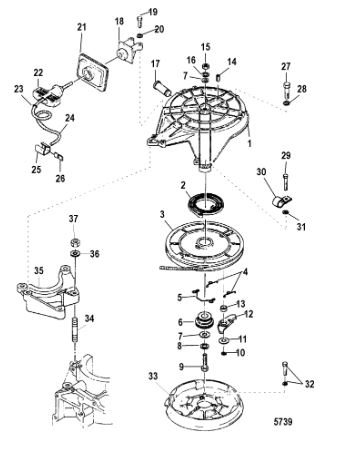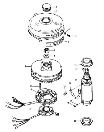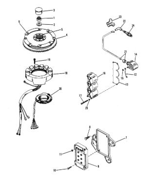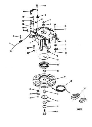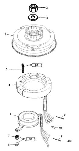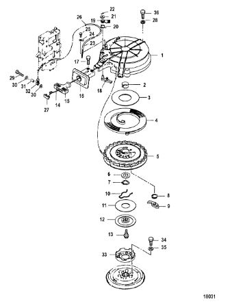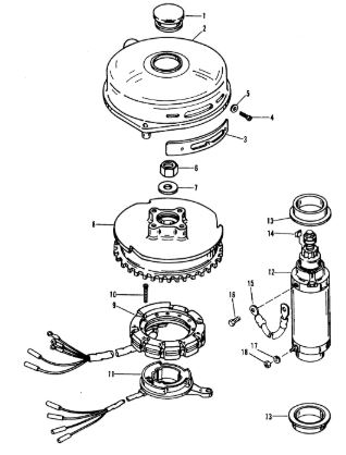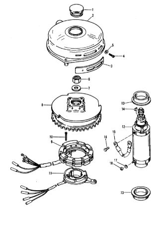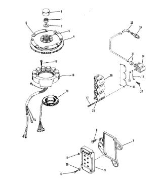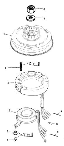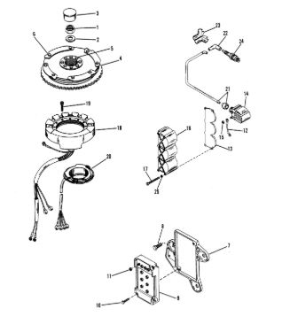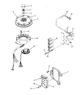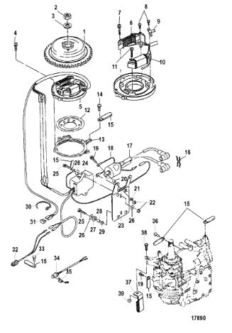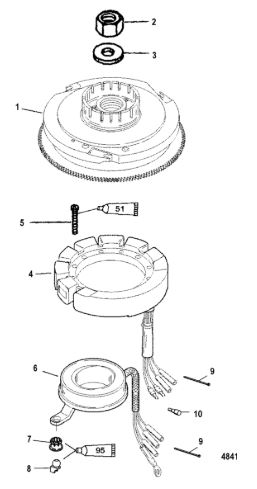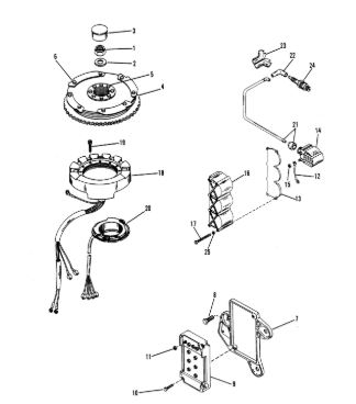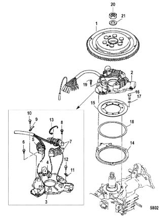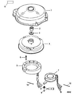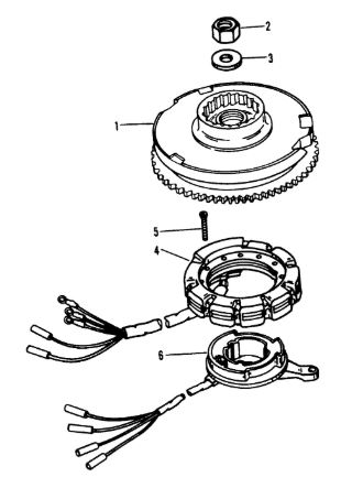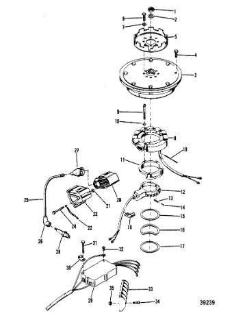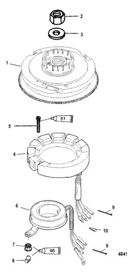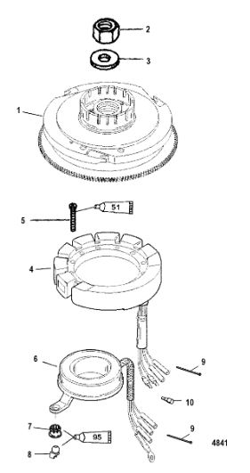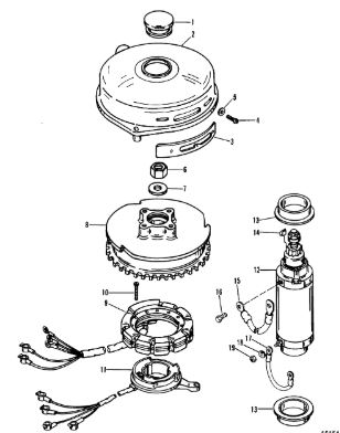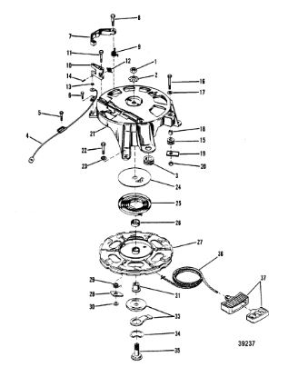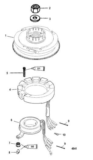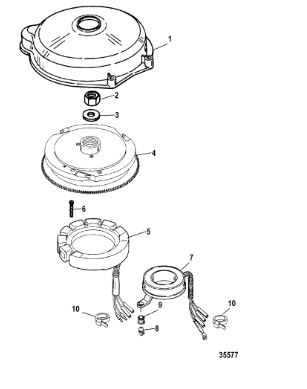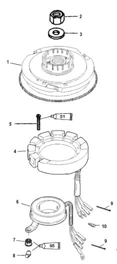 Маховик и статор (электрический) 2-Х ТАКТНОГО ПЛМ MERCURY 50EO Серийный номер от 9973100 до 0P016999