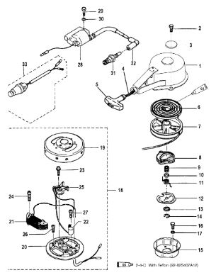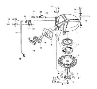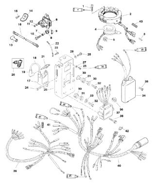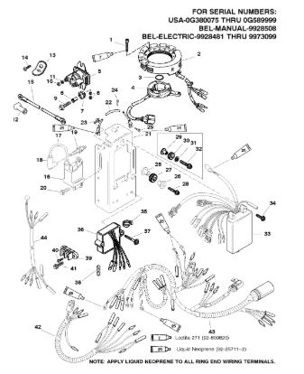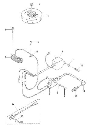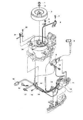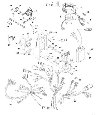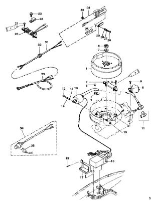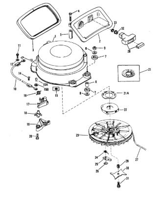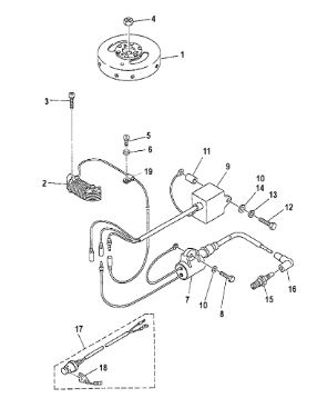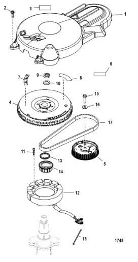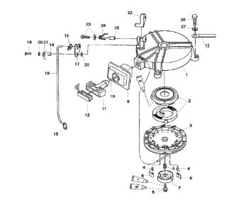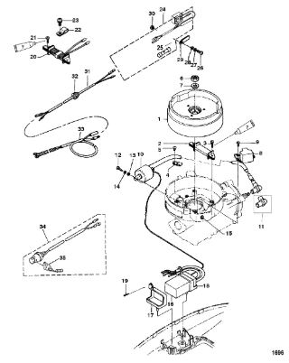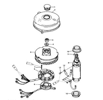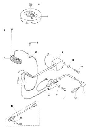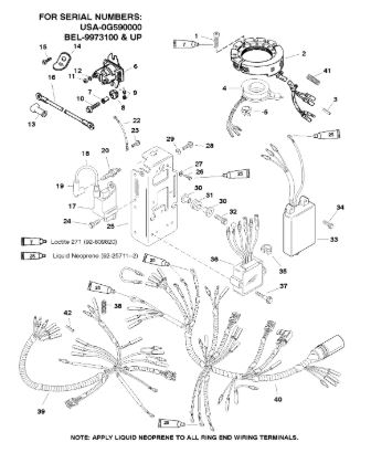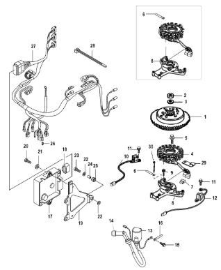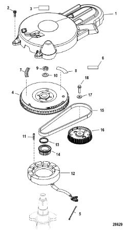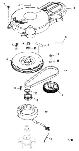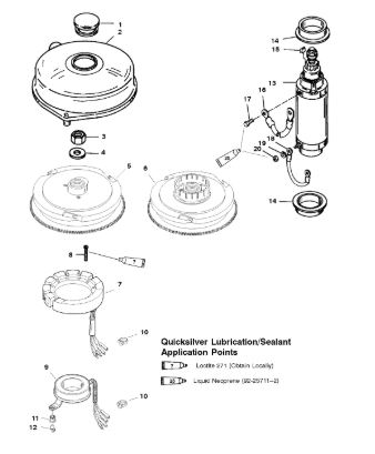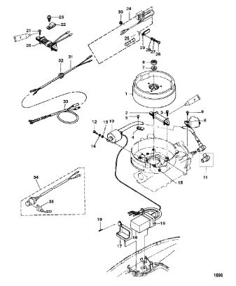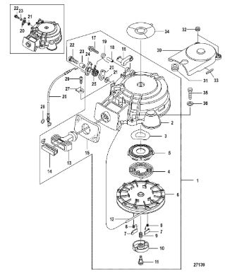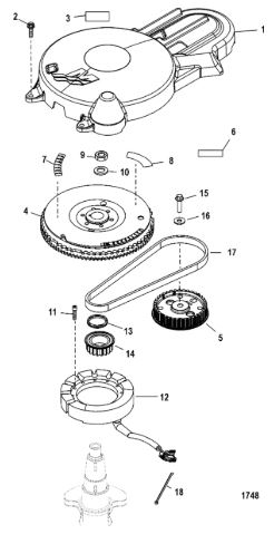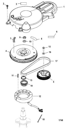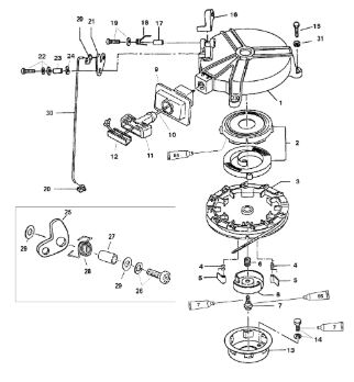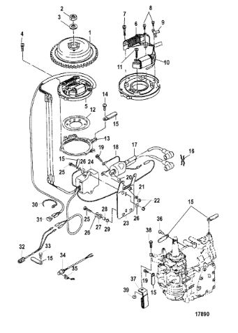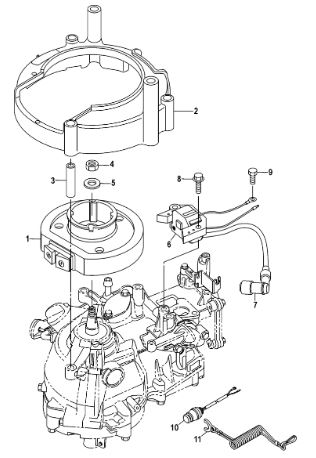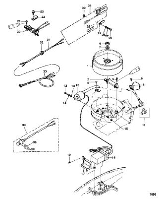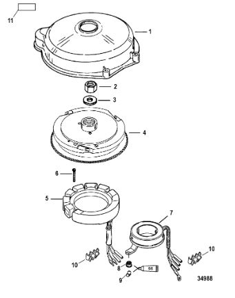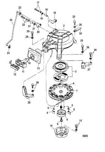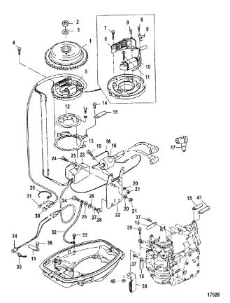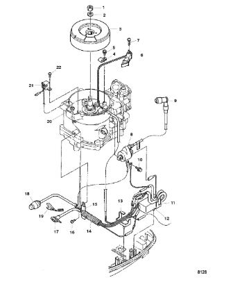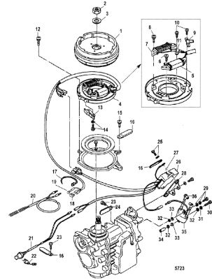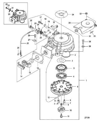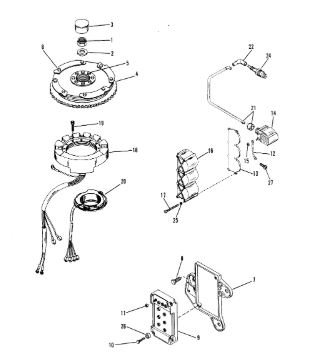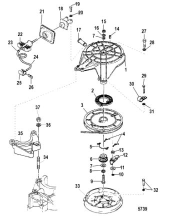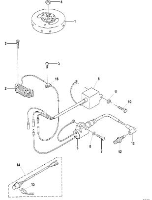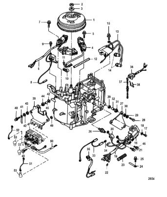 Маховик и статор (электрический) 2-Х ТАКТНОГО ПЛМ MERCURY 50EO Серийный номер от 9973100 до 0P016999