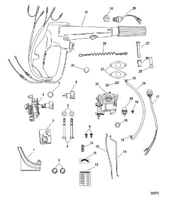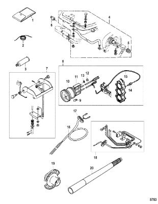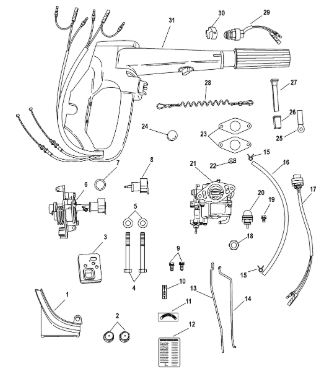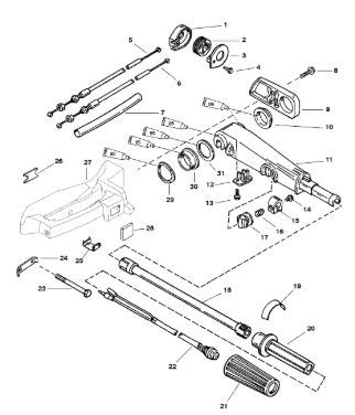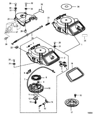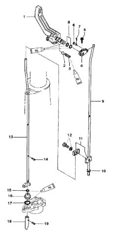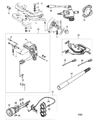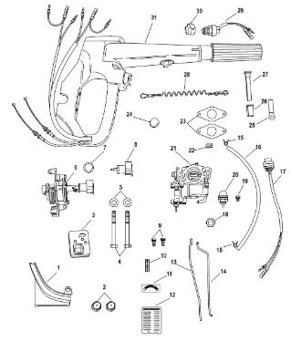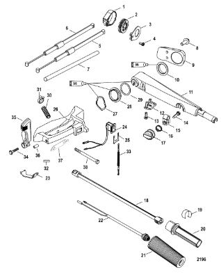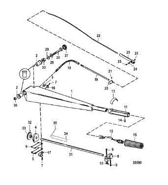 Дистанционное управление 2-Х ТАКТНОГО ПЛМ MERCURY 15 MH 294CC Серийный номер от 0N001590 до 0N055284