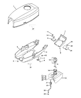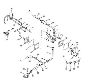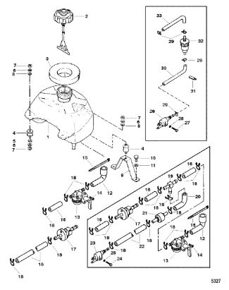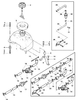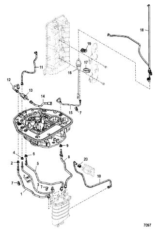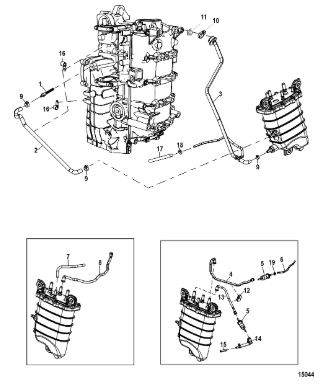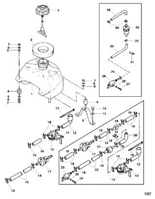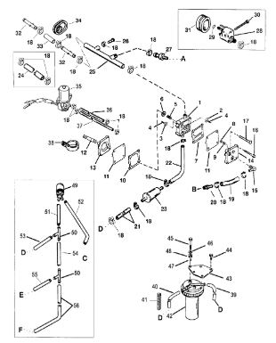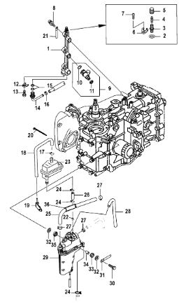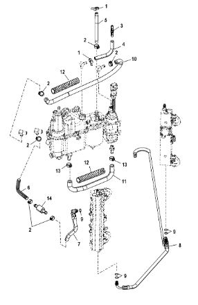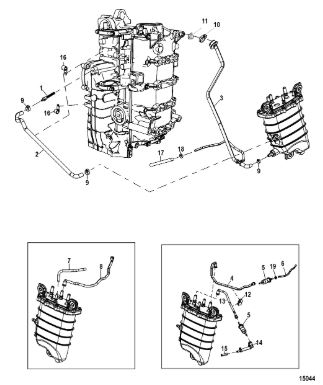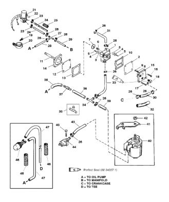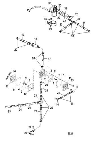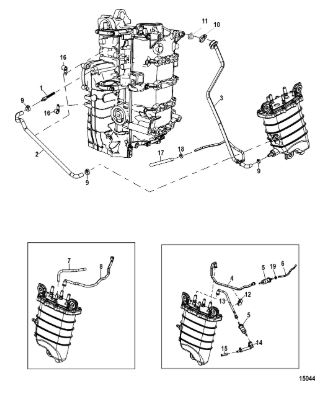 Цилиндры и гидравлические шланги 2-Х ТАКТНОГО ПЛМ MERCURY 50EO Серийный номер от 6428681 до 0B122929