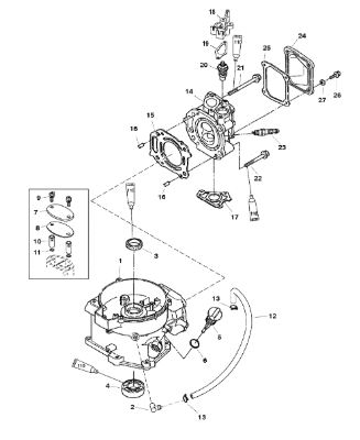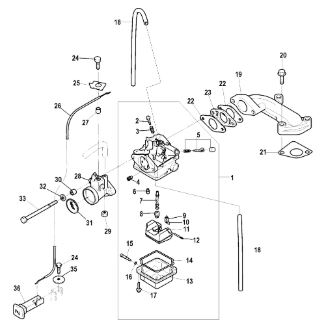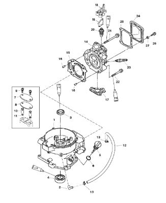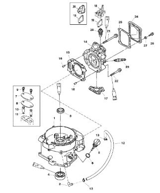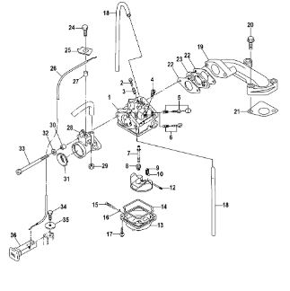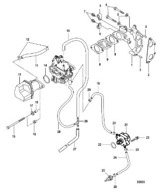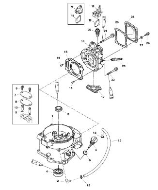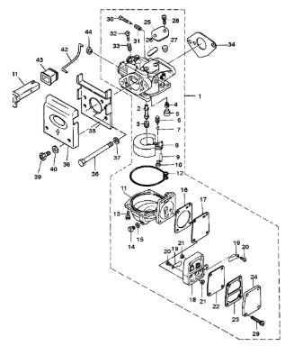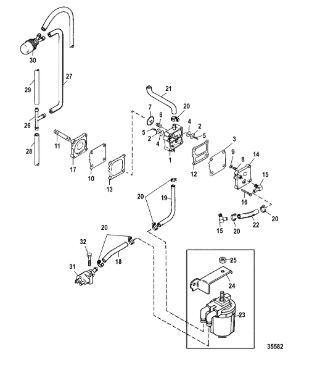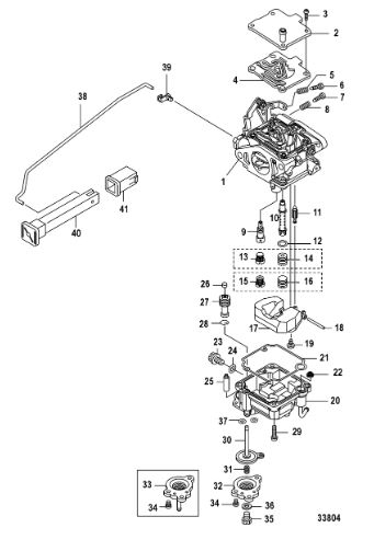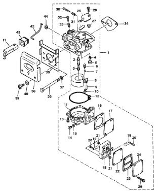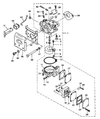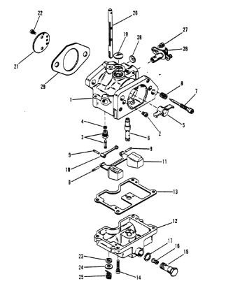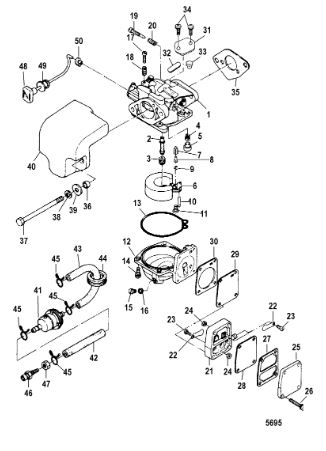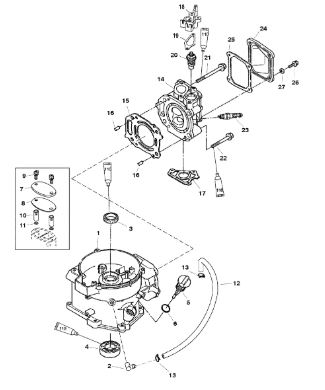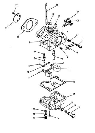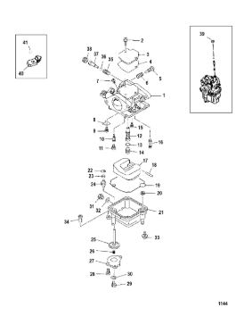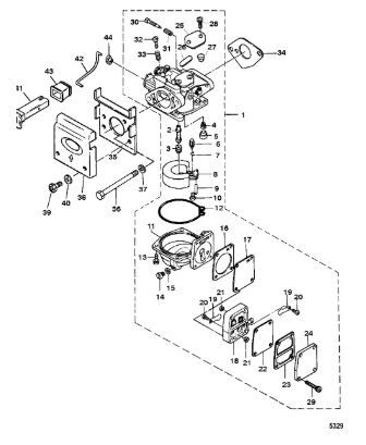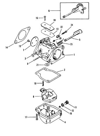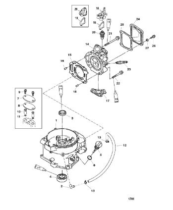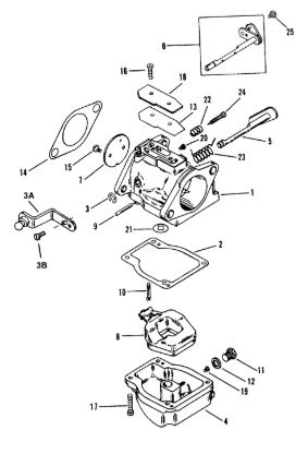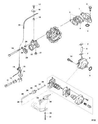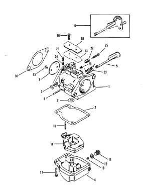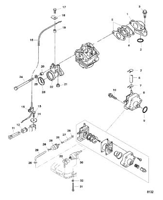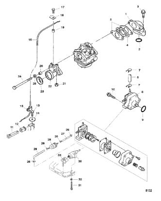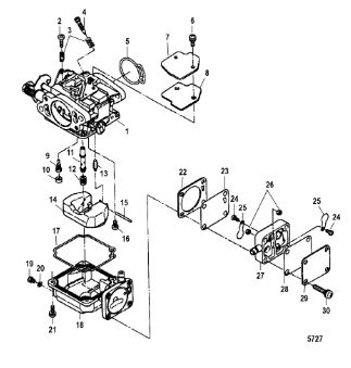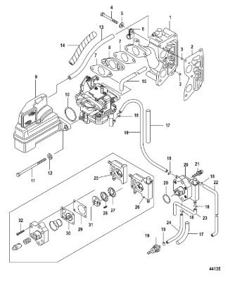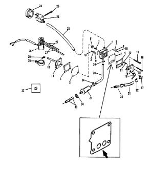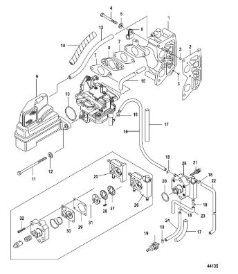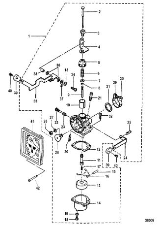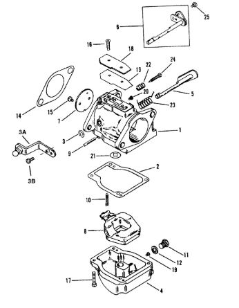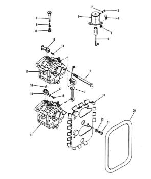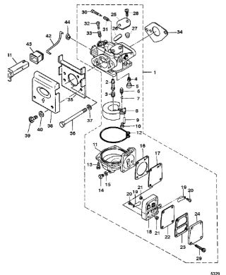 Карбюратор и пластина аттенюатора 2-Х ТАКТНОГО ПЛМ MERCURY 75 Серийный номер от 0A996142 до 0B240450