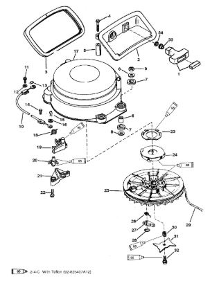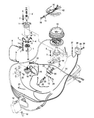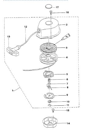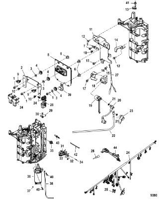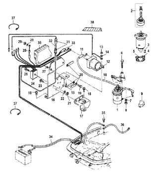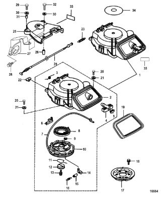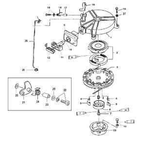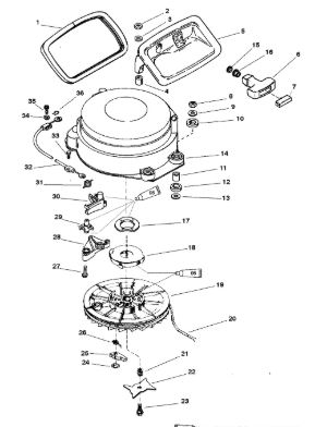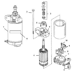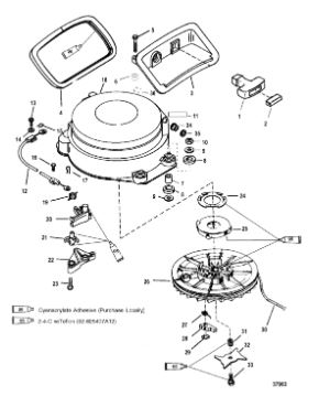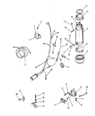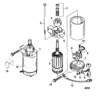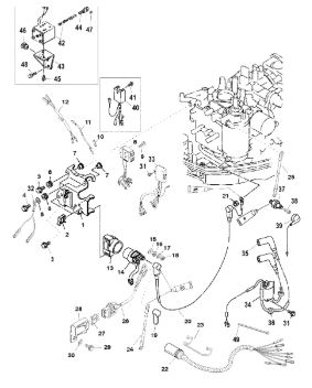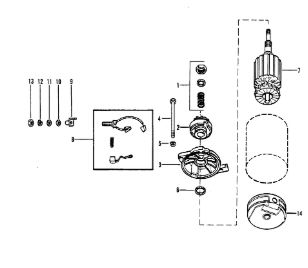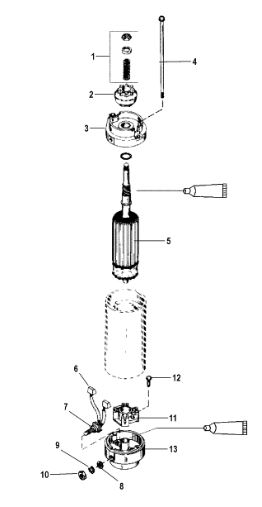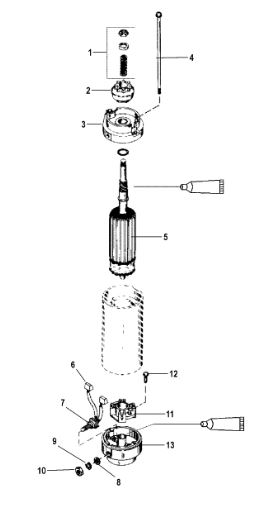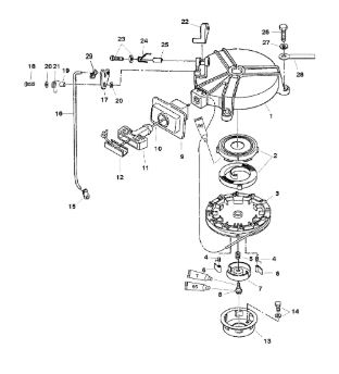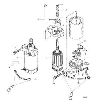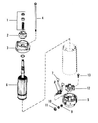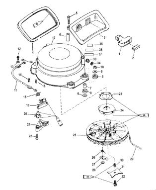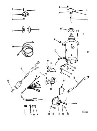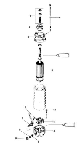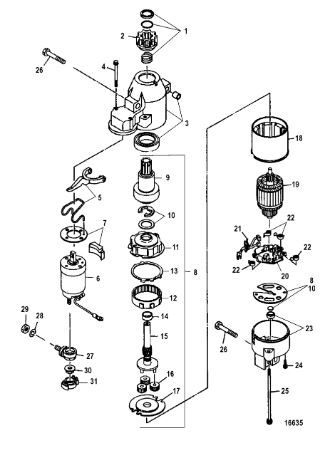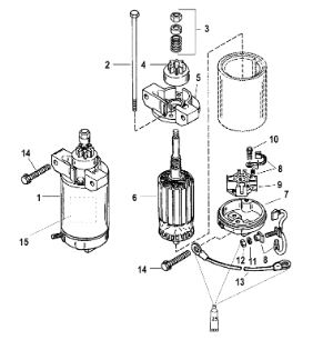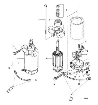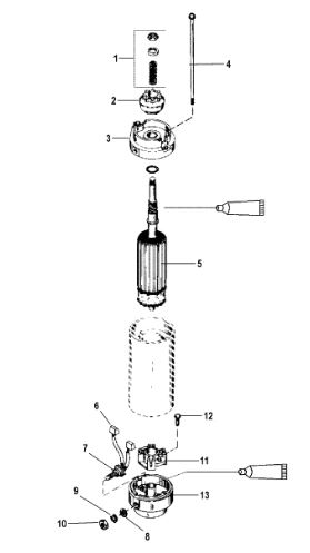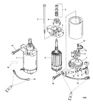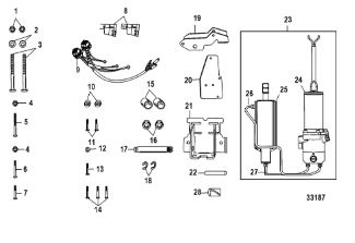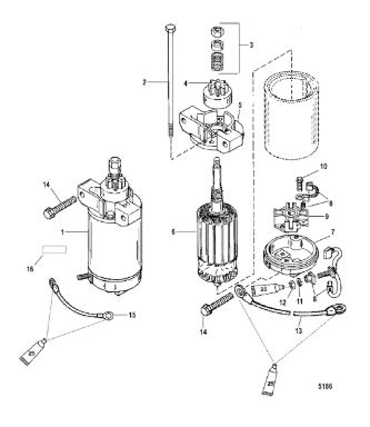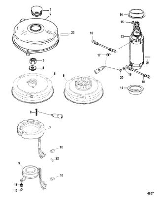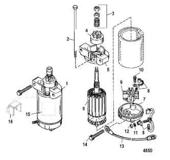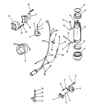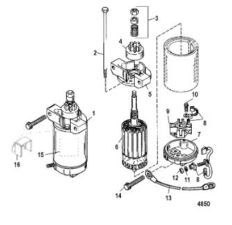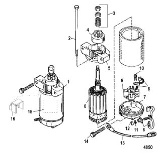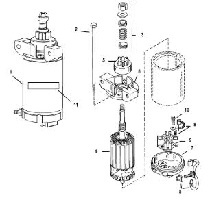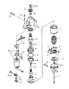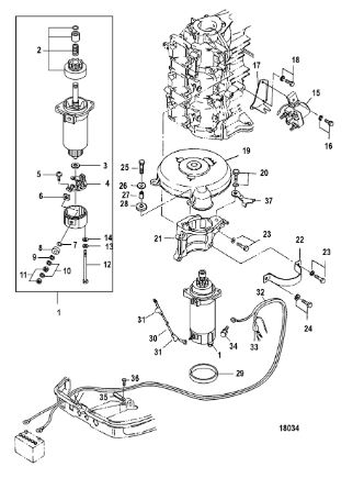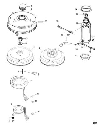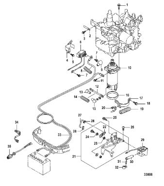 Компоненты электрического стартера 2-х тактного ПЛМ MERCURY Jet 25 Серийный номер от 0N088578 и выше