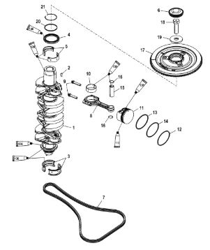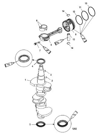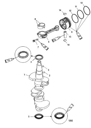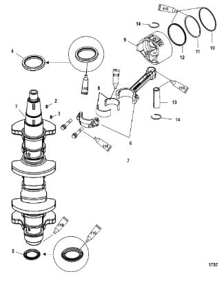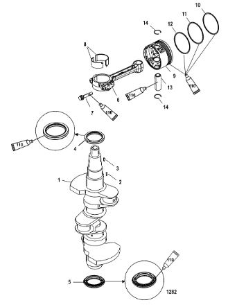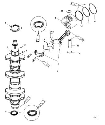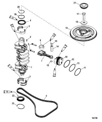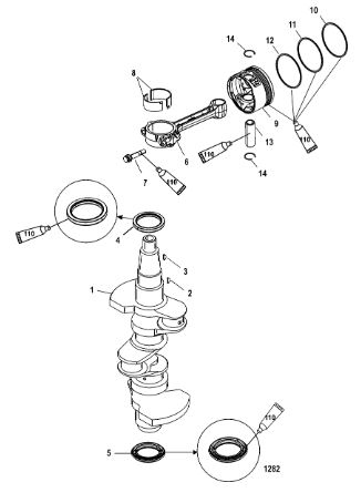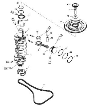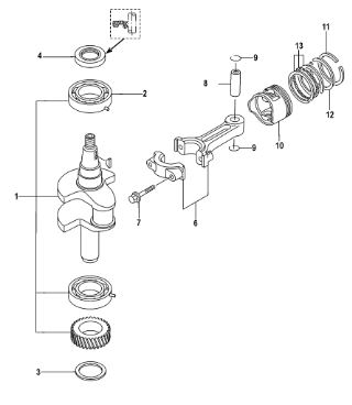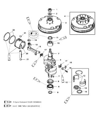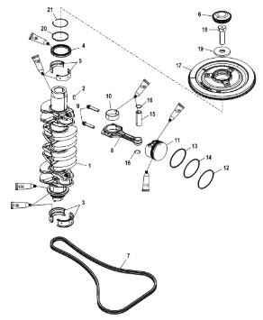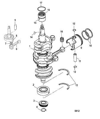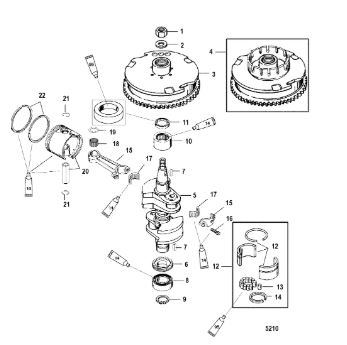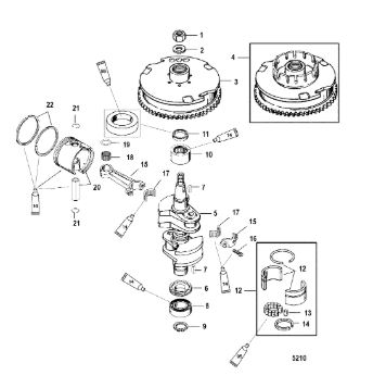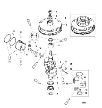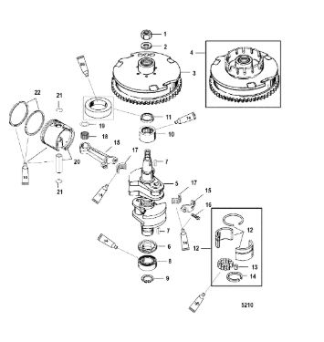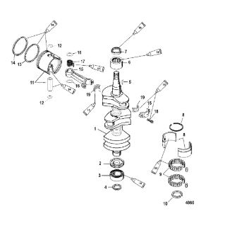 Коленчатый вал, поршень, маховик 2-х тактного ПЛМ MERCURY 40 M Серийный номер от 9854537 до 0P016999