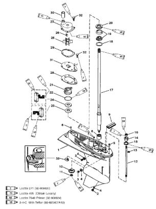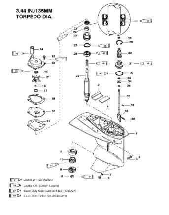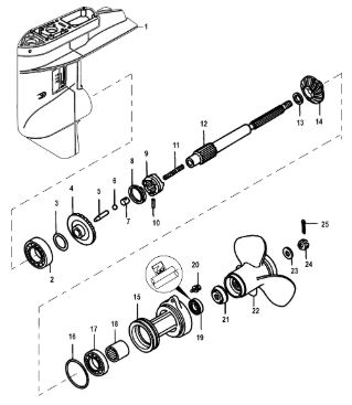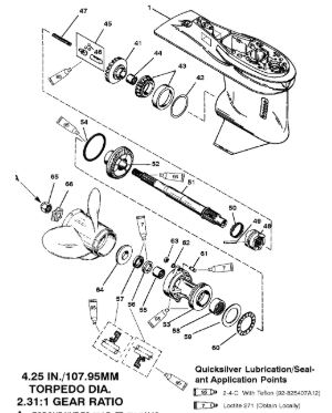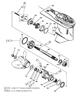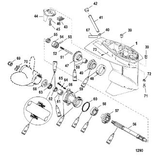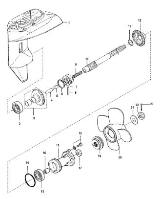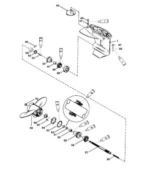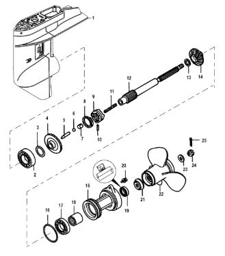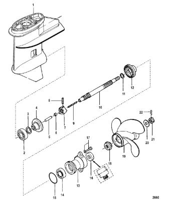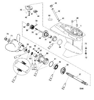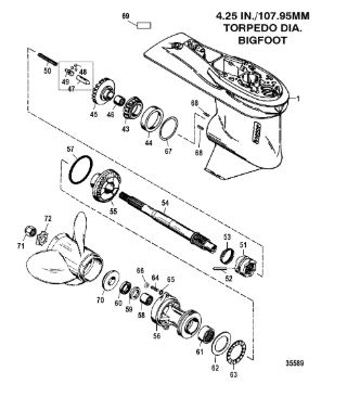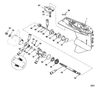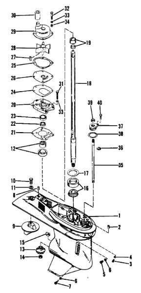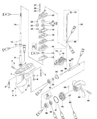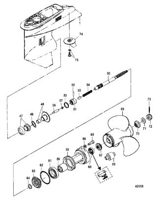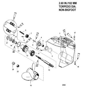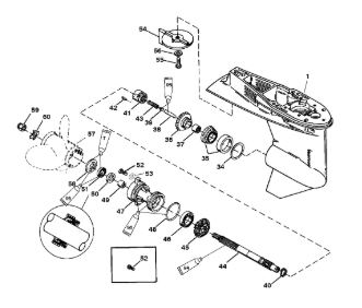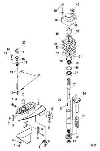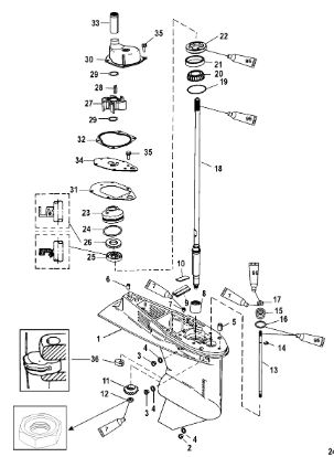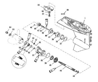 Корпус шестерни (карданный вал) 2-Х ТАКТНОГО ПЛМ MERCURY 50EO Серийный номер от 0D000750 до 0G290584