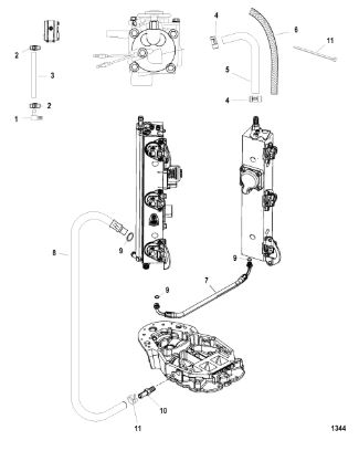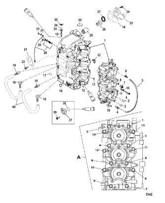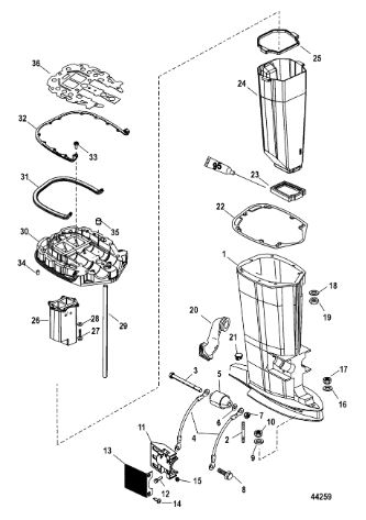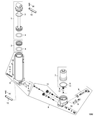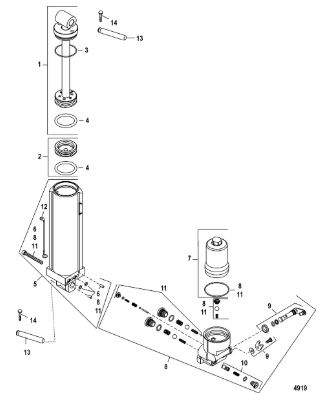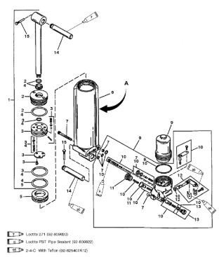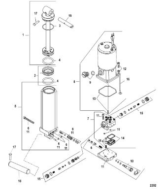 Компоненты гидроподъема (Часть 1) 4-Х ТАКТНОГО ПЛМ MERCURY 40 Серийный номер от 1B227000 до 1B344398