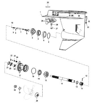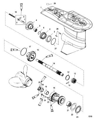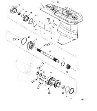 Корпус шестерни (приводной вал 2.31:1) 2-Х ТАКТНОГО ПЛМ MERCURY 90 Серийный номер от 1B000001 и выше