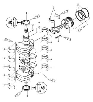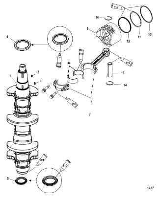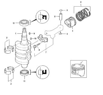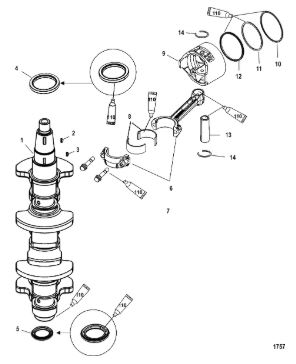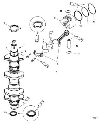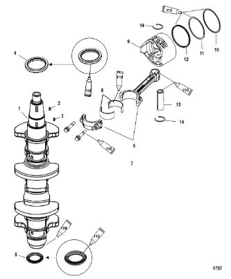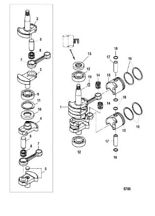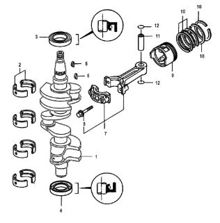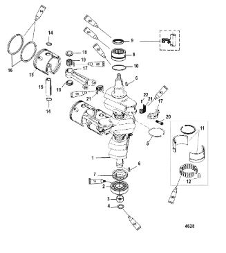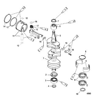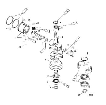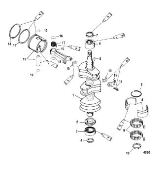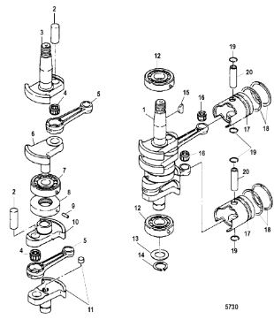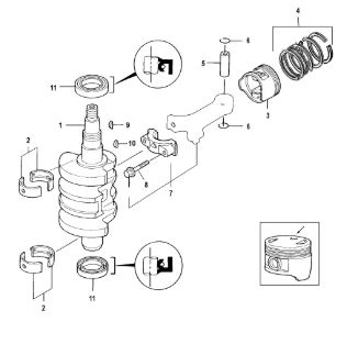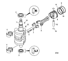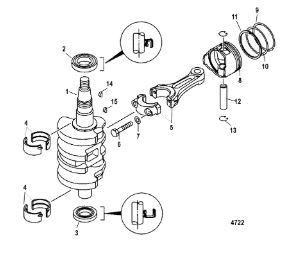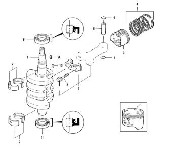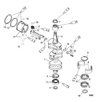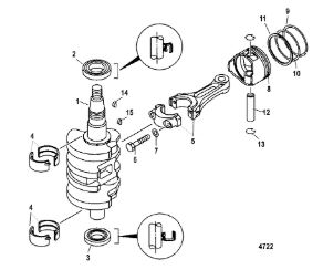 Коленчатый вал, поршни и шатуны 2-х тактного ПЛМ MERCURY 30 M Серийный номер от 0N001875 до 0N055504