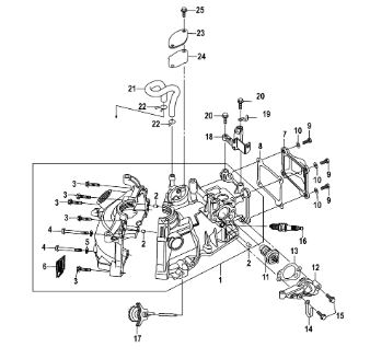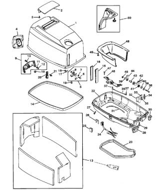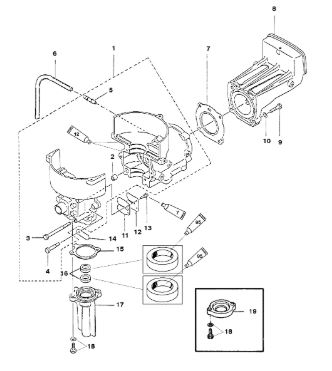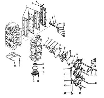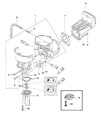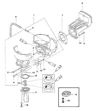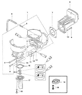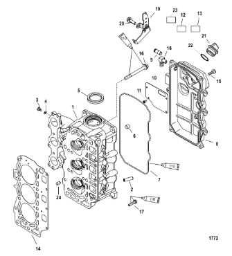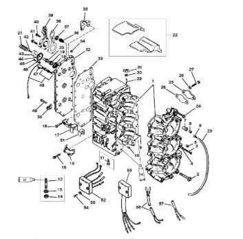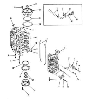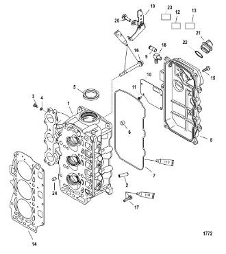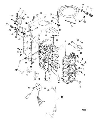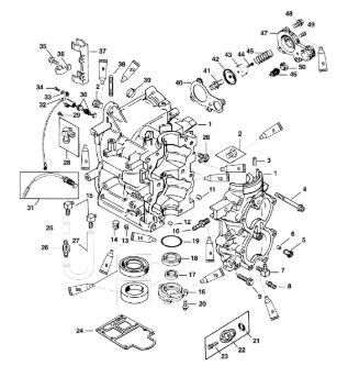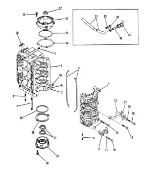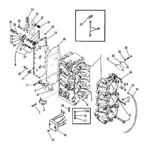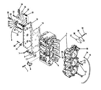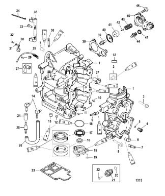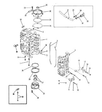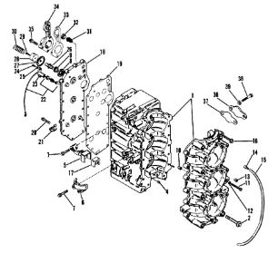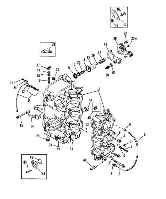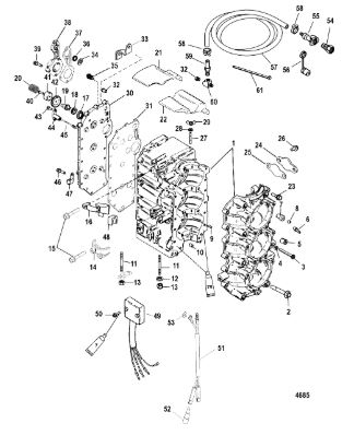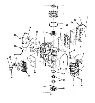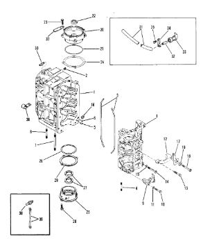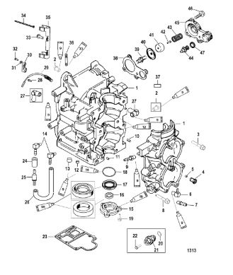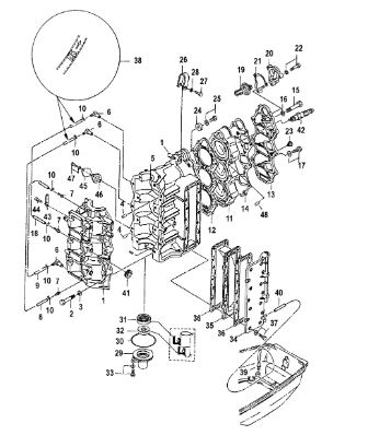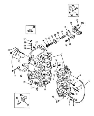 Блок цилиндров и картер (Часть 1) 2-Х ТАКТНОГО ПЛМ MERCURY 50EO Серийный номер от 9885345 до 9973099