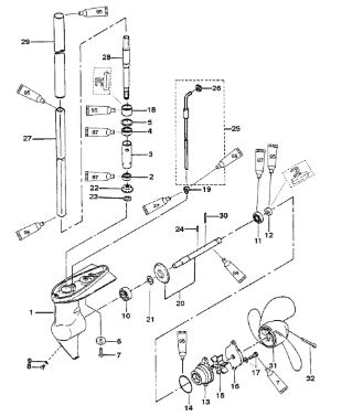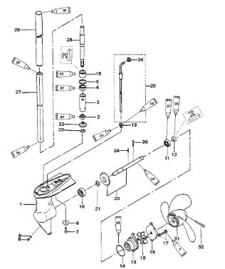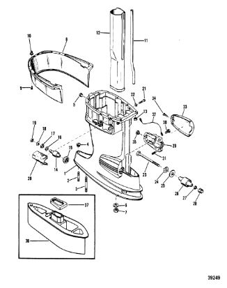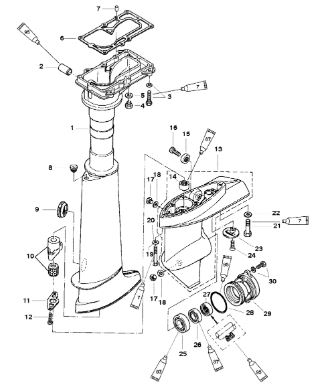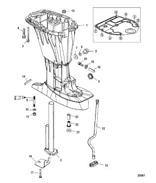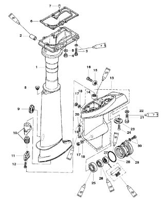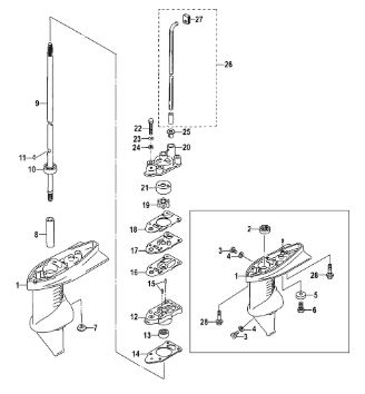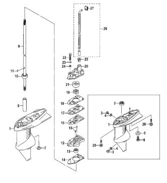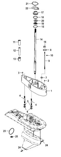 Удлинитель корпуса приводного вала 2-х тактного ПЛМ MERCURY Jet 25 Серийный номер от 0N088578 и выше