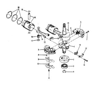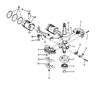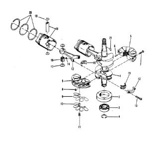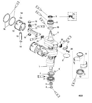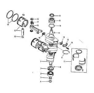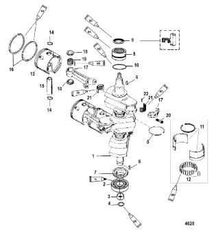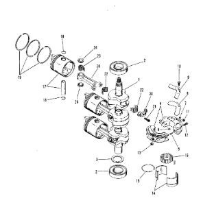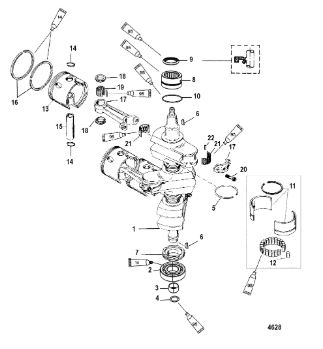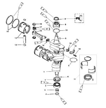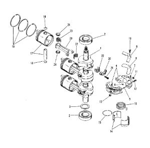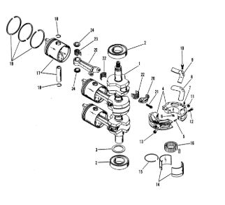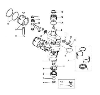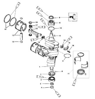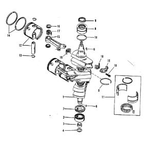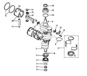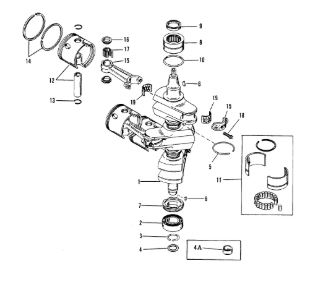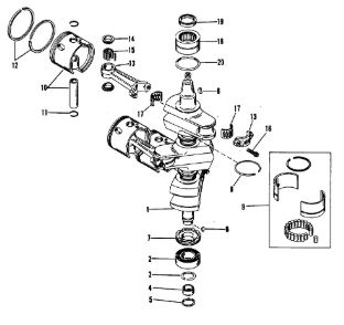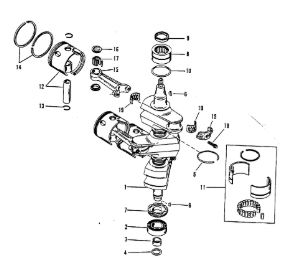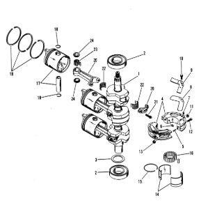 Коленчатый вал, поршни и шатуны 2-х тактного ПЛМ MERCURY 25 М Серийный номер от 0N018456 до 0N055504
