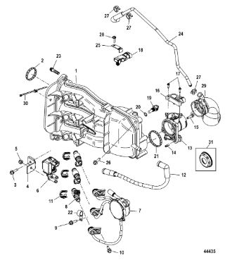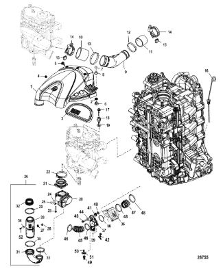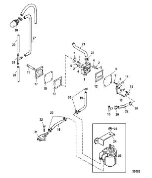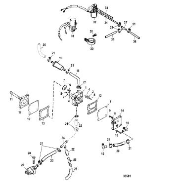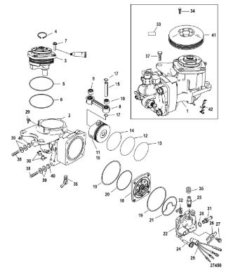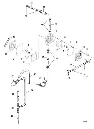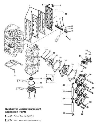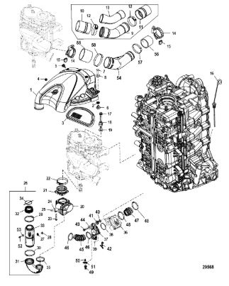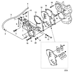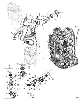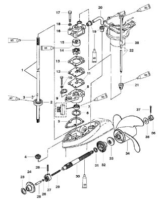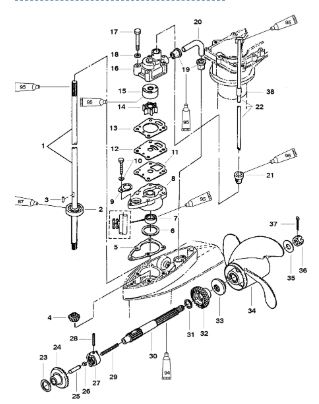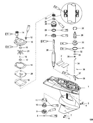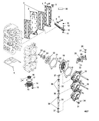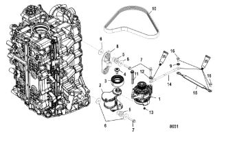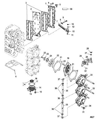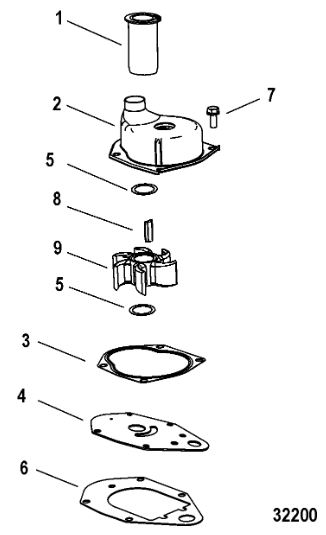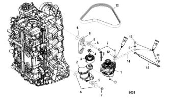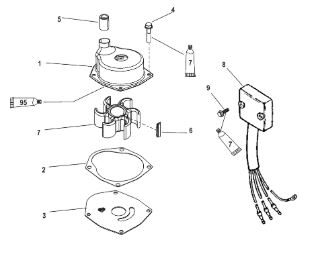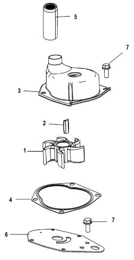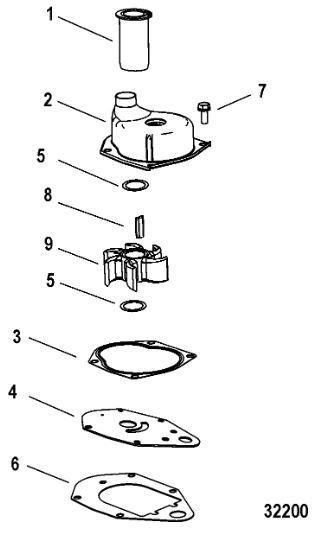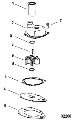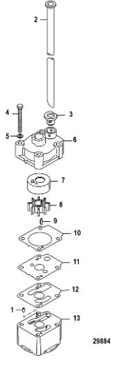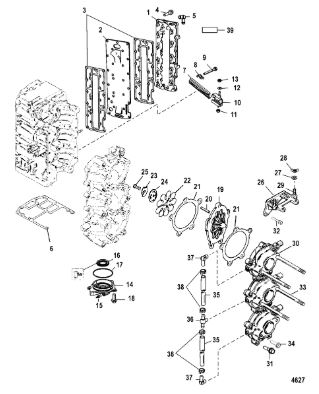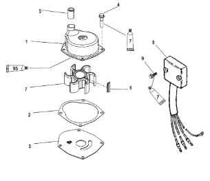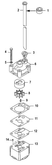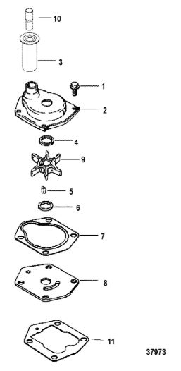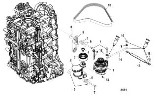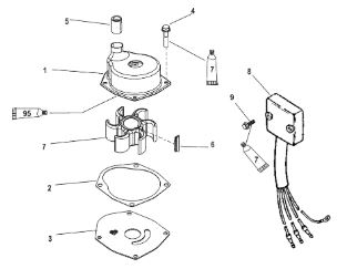 Компоненты водяного насоса двигателя 2-х тактного ПЛМ MERCURY 30 M Серийный номер от 0N055505 и выше