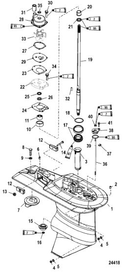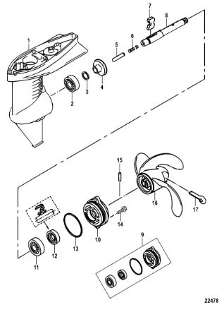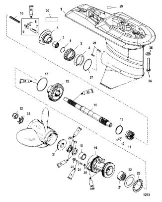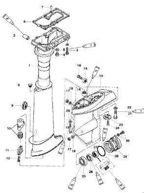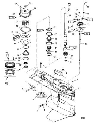 Корпус шестерни (карданный вал) 2-Х ТАКТНОГО ПЛМ MERCURY 50EO Серийный номер от 0B122930 до 0D000749