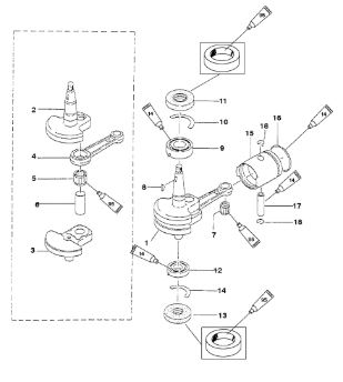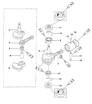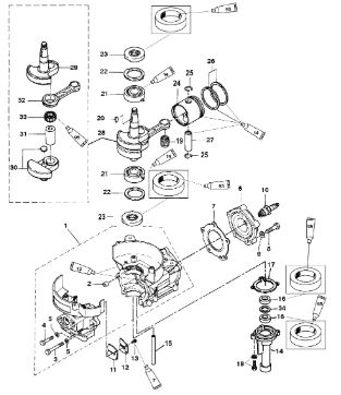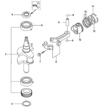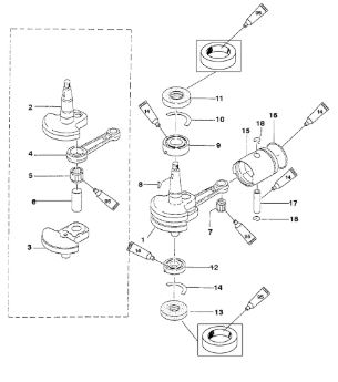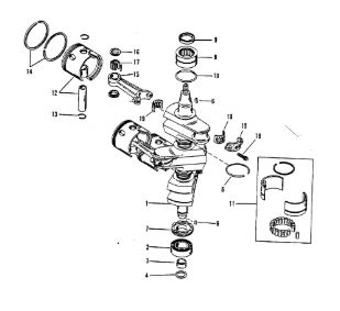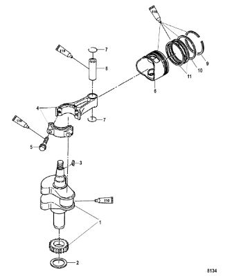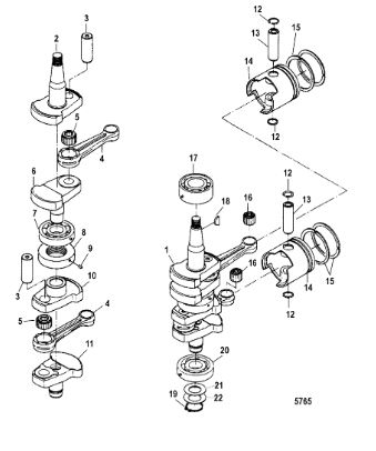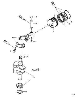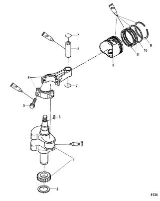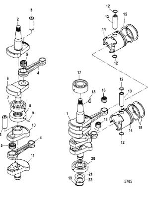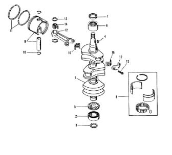 Коленчатый вал, поршни и шатуны 2-Х ТАКТНОГО ПЛМ MERCURY 50EO Серийный номер от 0P017000 до 0P325499