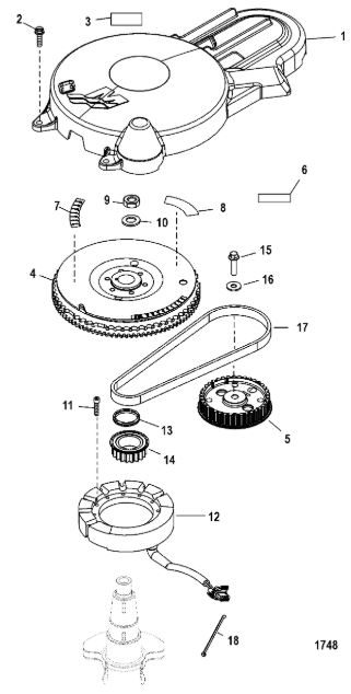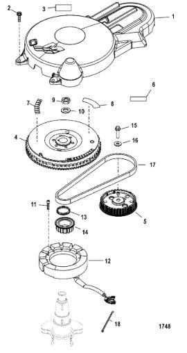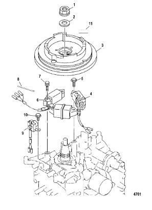 Маховик / Катушка зажигания 4-Х ТАКТНОГО ПЛМ MERCURY 15 Carb(2CYL) Серийный номер от 0R235949 и выше