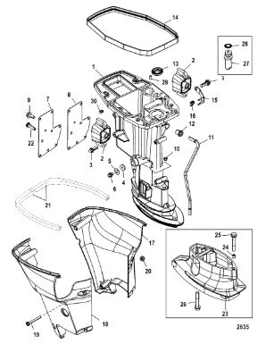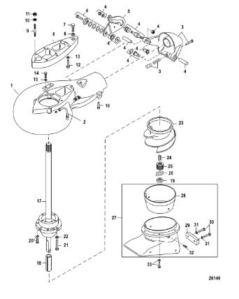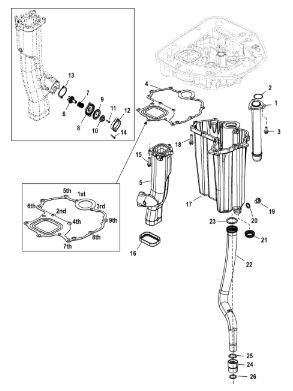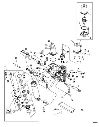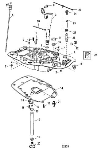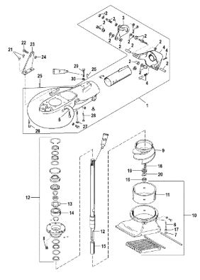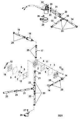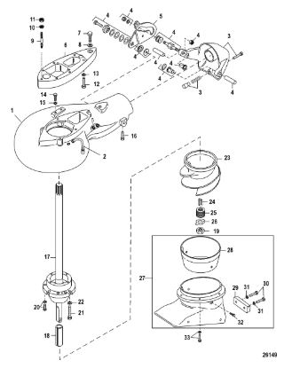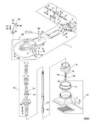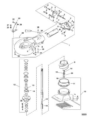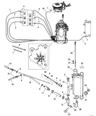 Компоненты гидроподъема (Часть 2) 4-Х ТАКТНОГО ПЛМ MERCURY 30 Серийный номер от 0P153500 до 0P400999
