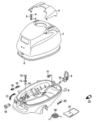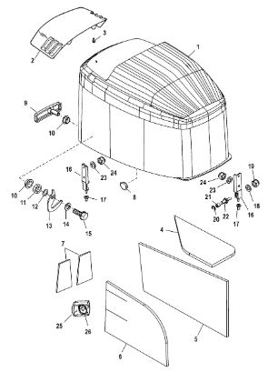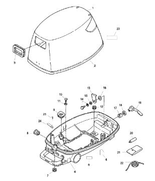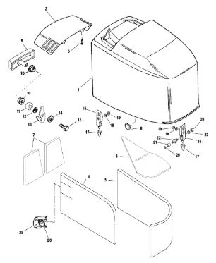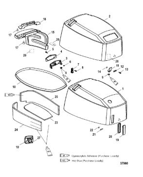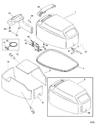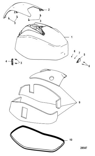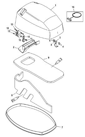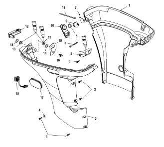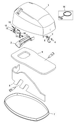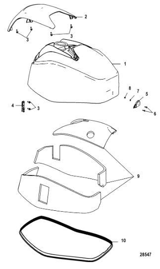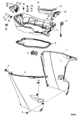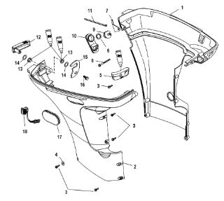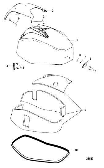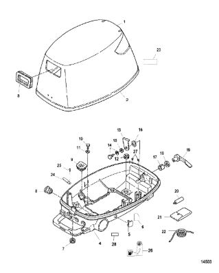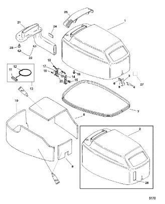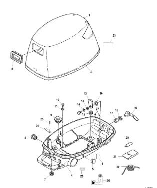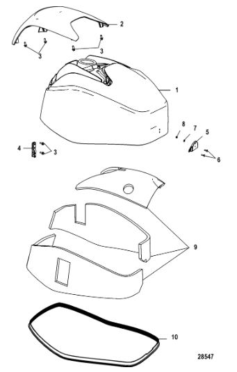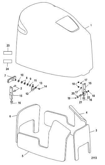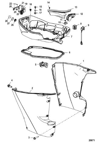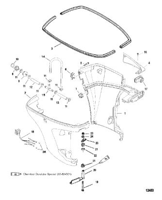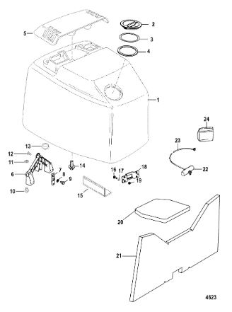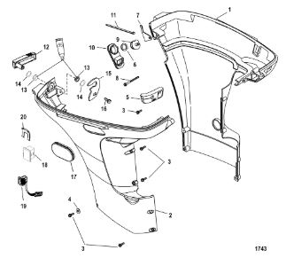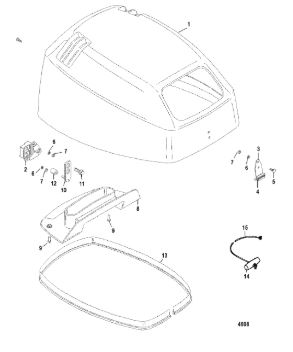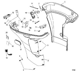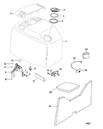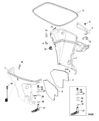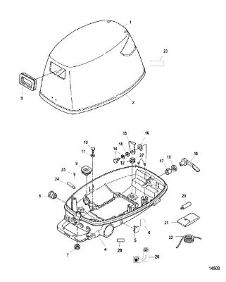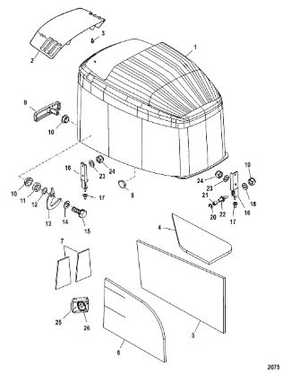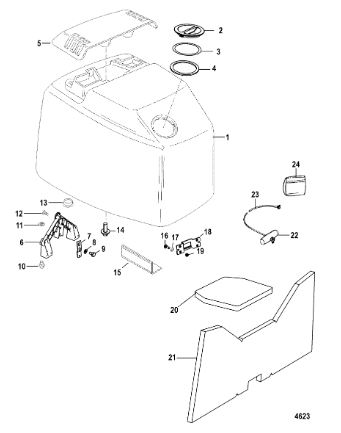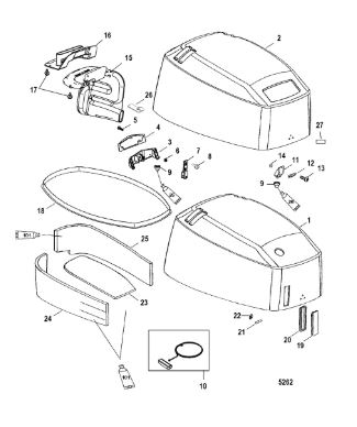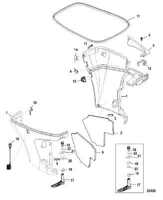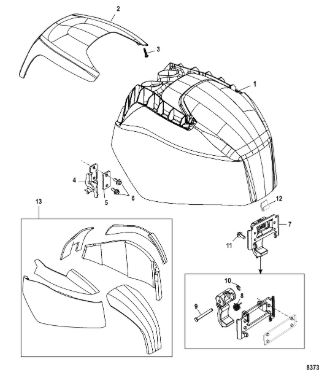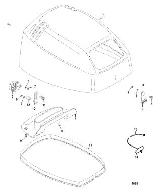 Задний обтекатель, замок в сборе 4-Х ТАКТНОГО ПЛМ MERCURY 135 Серийный номер от 0P464488 до 0P514868