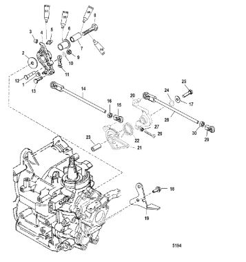 Компоненты ручки переключения передач 4-Х ТАКТНОГО ПЛМ MERCURY 135 Серийный номер от 1B517159 и выше
