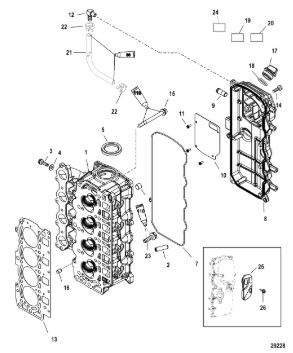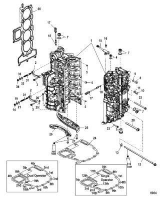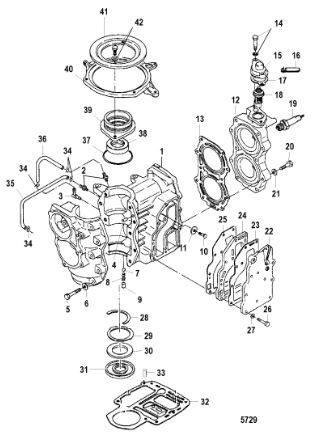 Комплектующие для прокладок двигателя 2-х тактного ПЛМ MERCURY 5 M Серийный номер от 0P401000 и выше