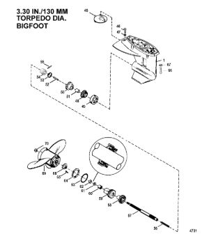 Корпус карданного вала, редуктор 2-Х ТАКТНОГО ПЛМ MERCURY 4 M Серийный номер от 0G710613 до 0T894438