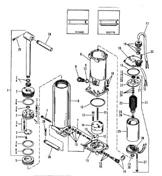Компоненты гидроподъема (Часть 1) 4-Х ТАКТНОГО ПЛМ MERCURY 40 Серийный номер от 0P401000 до 0P515896