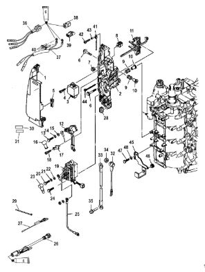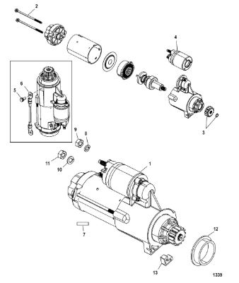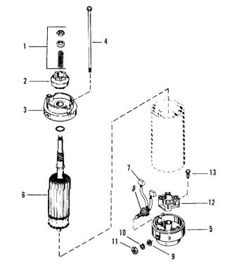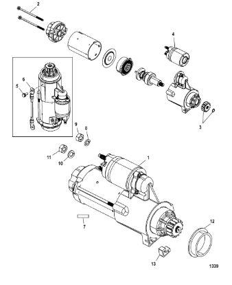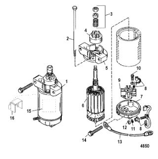 Стартер, соленоид и выпрямитель 2-Х ТАКТНОГО ПЛМ MERCURY 50EO Серийный номер от 0B122930 до 0D000749