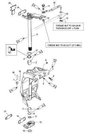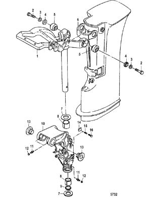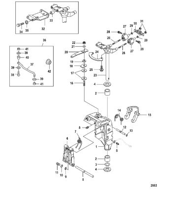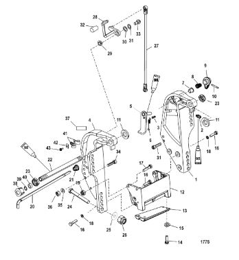 Поворотный кронштейн (Часть 2) 2-х тактного ПЛМ MERCURY 40 M Серийный номер от 00P017000 до 0P325499