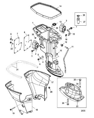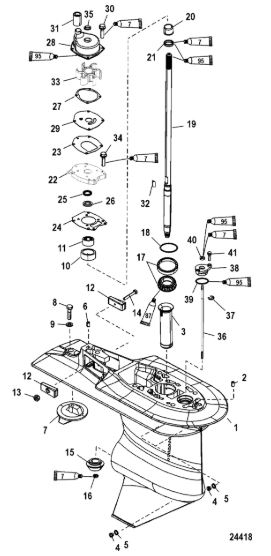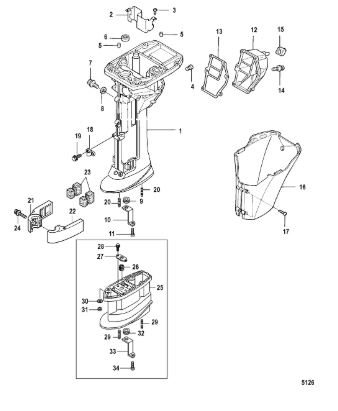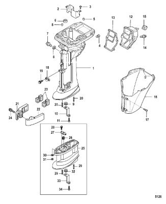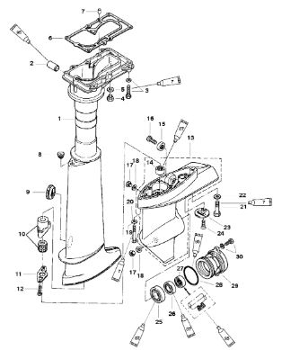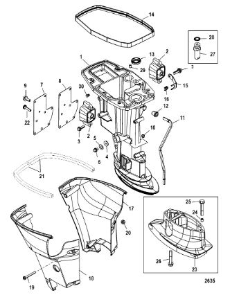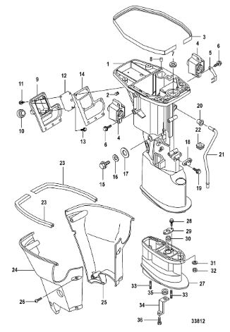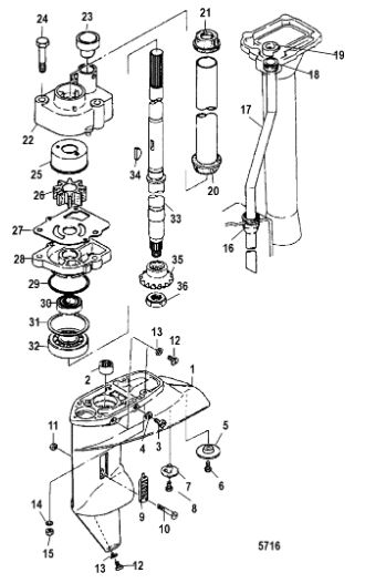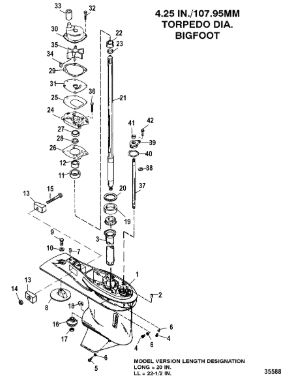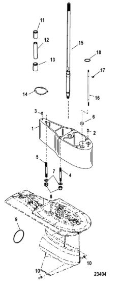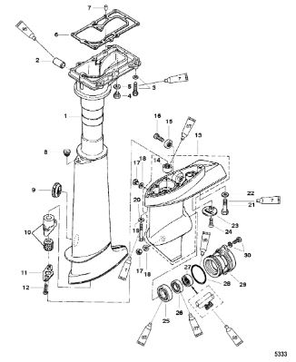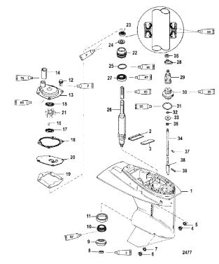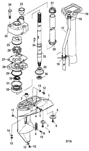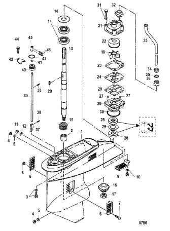 Корпус карданного вала, редуктор 2-х тактного ПЛМ MERCURY 5 M Серийный номер от 0G710613 до 0T894438
