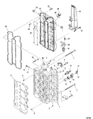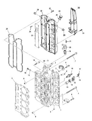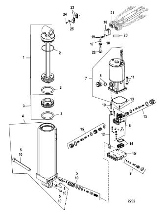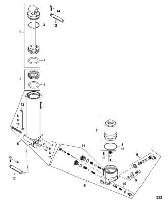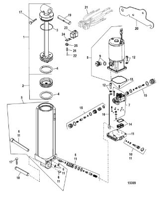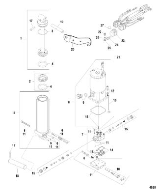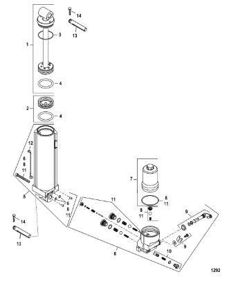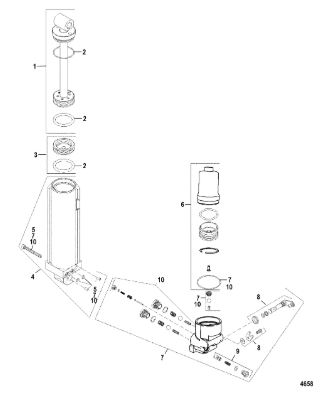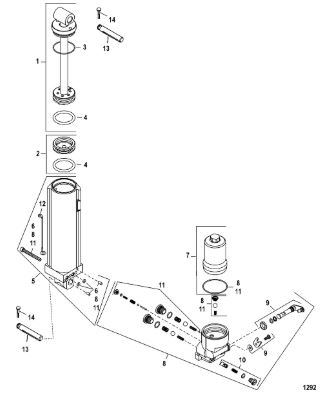 Компоненты гидроподъема (Часть 1) 4-Х ТАКТНОГО ПЛМ MERCURY 30 Серийный номер от 0P153500 до 0P400999