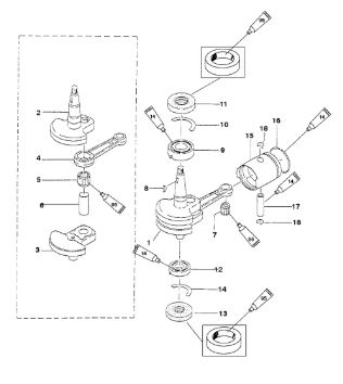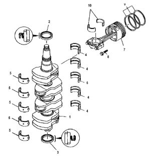 Коленчатый вал, поршни и шатуны 2-х тактного ПЛМ MERCURY 9.9 M TMC Серийный номер от 0N059858 и выше