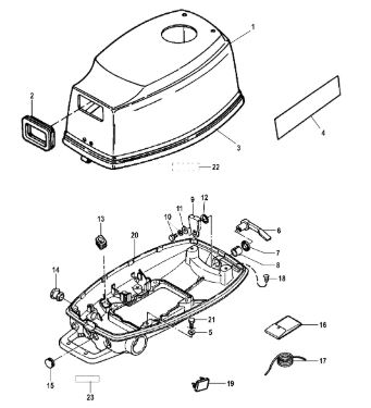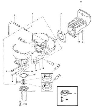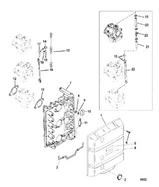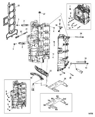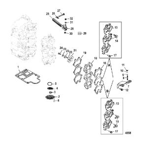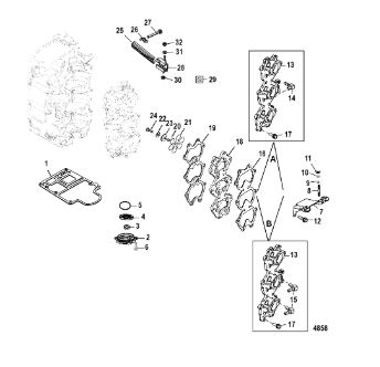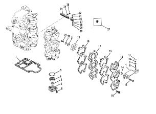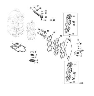 Комплектующие для прокладок двигателя 2-Х ТАКТНОГО ПЛМ MERCURY 4 M Серийный номер от 0P401000 и выше
