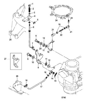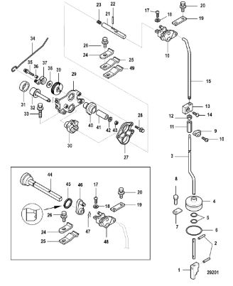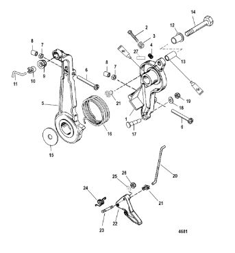 Компоненты ручки переключения передач 4-Х ТАКТНОГО ПЛМ MERCURY 135 Серийный номер от 0P514869 и выше