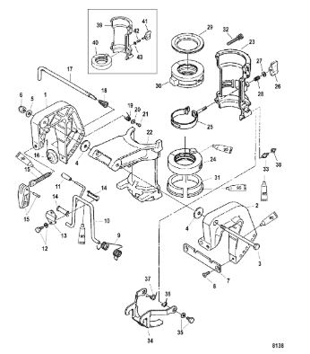 Поворотный кронштейн (Часть 1) 2-х тактного ПЛМ MERCURY 40 M Серийный номер от 00P017000 до 0P325499