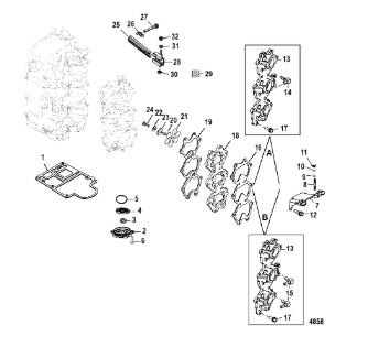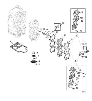 Комплектующие для прокладок двигателя 2-Х ТАКТНОГО ПЛМ MERCURY 4 M Серийный номер от 0T894439 и выше