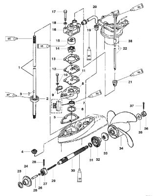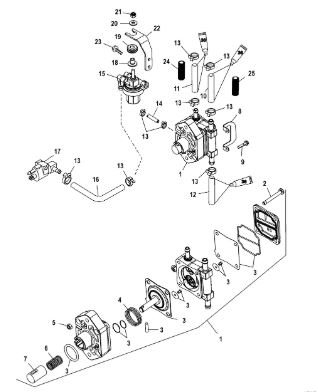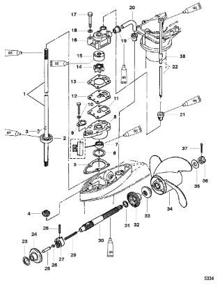 Компоненты водяного насоса двигателя 2-х тактного ПЛМ MERCURY 25 М Серийный номер от 0N055505 и выше