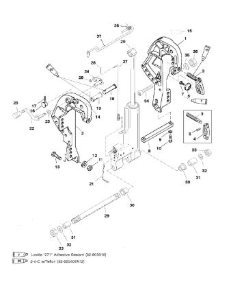 Компоненты гидроподъема (Часть 2) 4-Х ТАКТНОГО ПЛМ MERCURY 40 Серийный номер от 1B227000 до 1B344398
