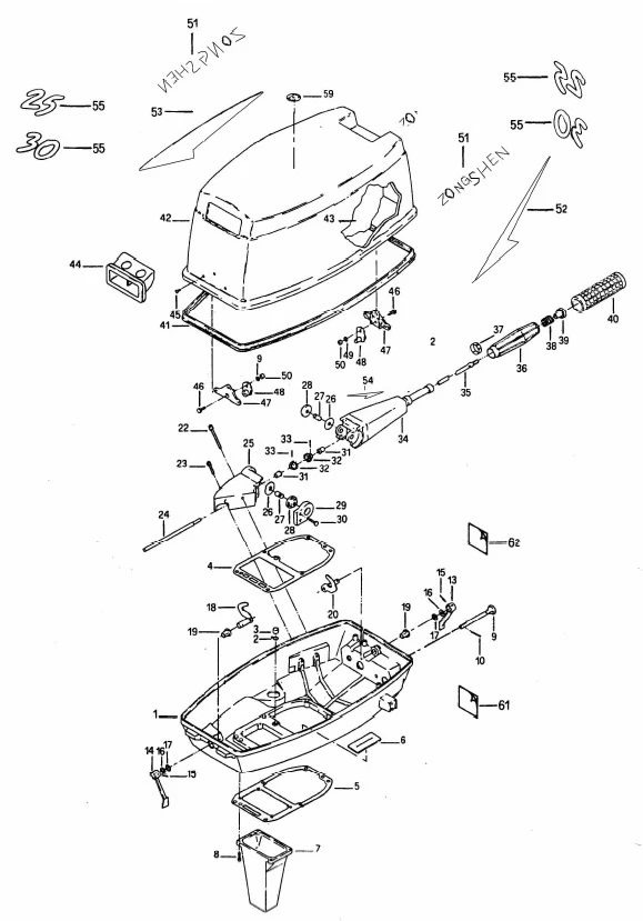 • Каталог запчастей Zongshen T25BM, T30BM, T25FW, T30FW